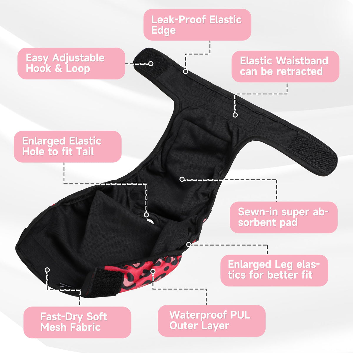 Paw Legend Washable Reusable Female Dog Period Diapers for Heat Doggie Puppy Diapers for Female Dogs (3 Pack, Leopard, X-Small)