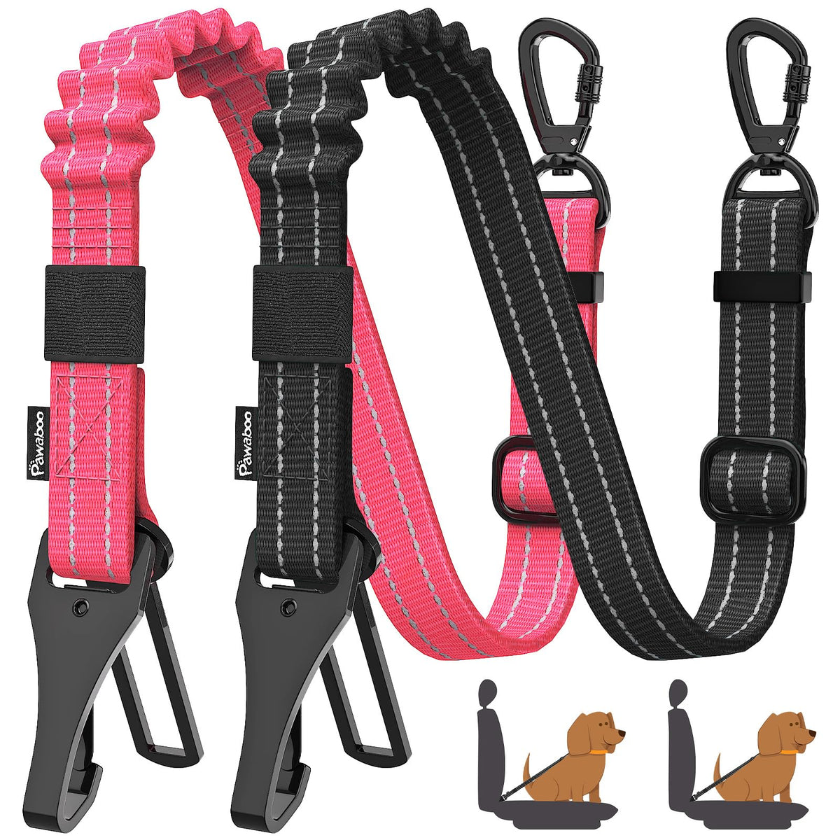 Pawaboo 2Pack Dog Seatbelt For Car, 3-In-1 Dog Car Seat Belt Bungee, Shockproof Dog Tether For Car With Buckle & Hook Latch, Adj