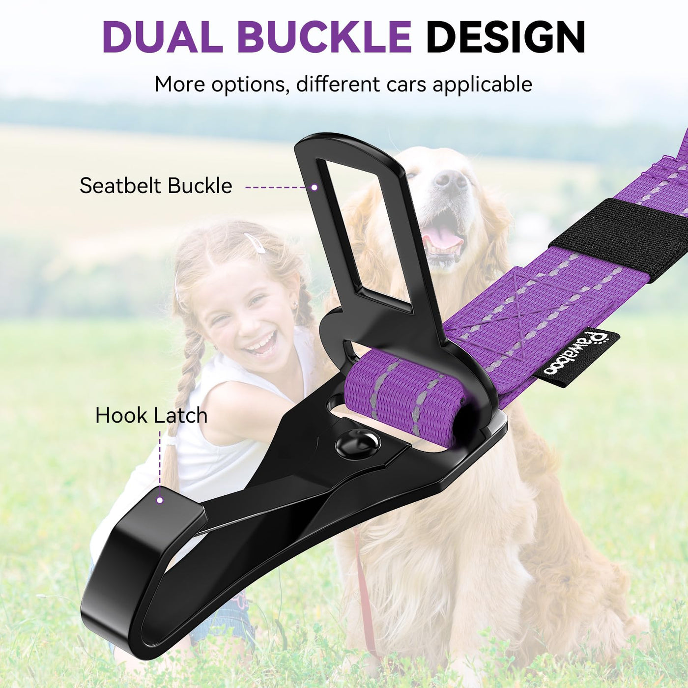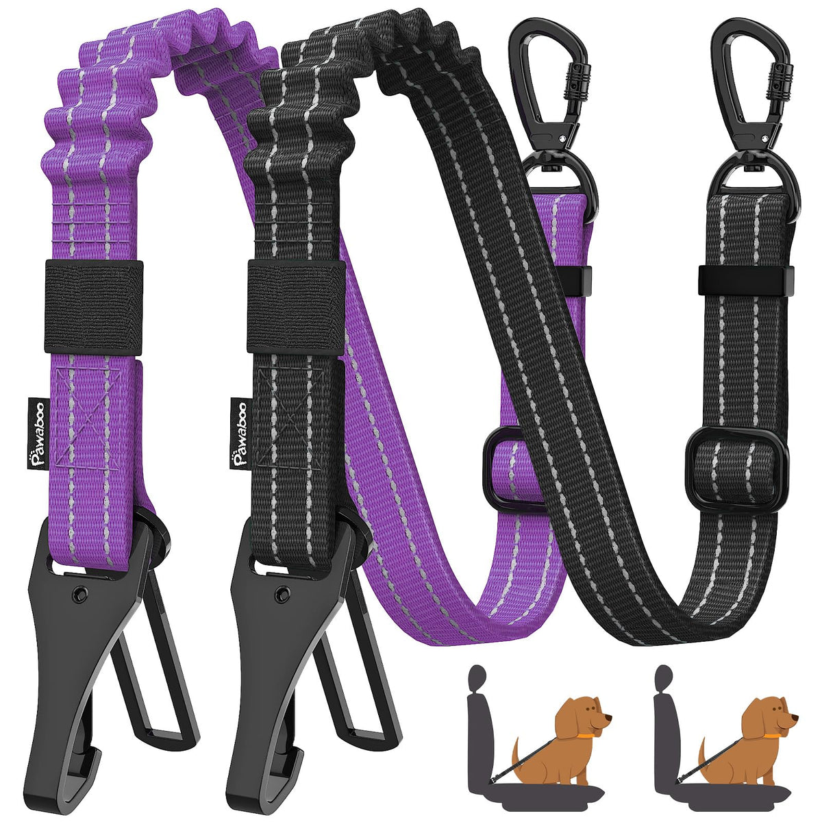 Pawaboo 2Pack Dog Seatbelt For Car, Dog Car Seat Belt Bungee, Shockproof Dog Tether For Car With Buckle & Hook Latch, Adjustable