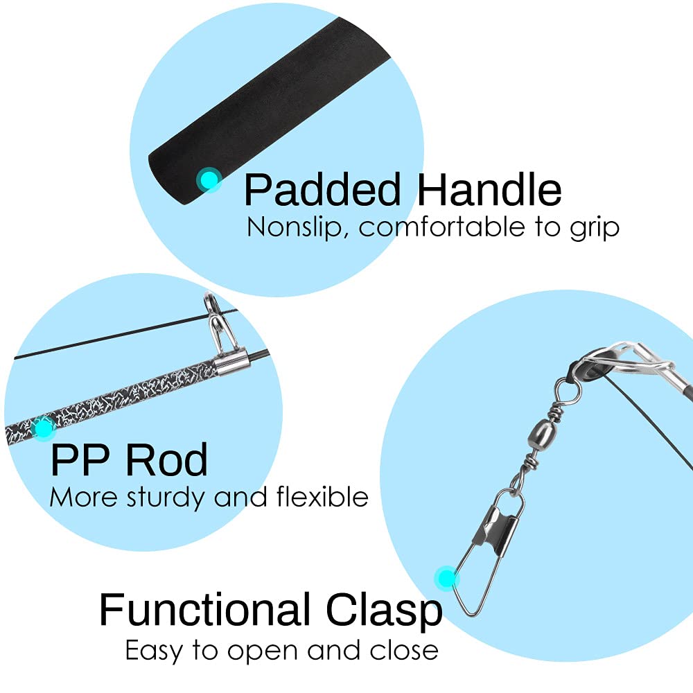 Product Features: ?? The rod is retractable from 16.3 in / 41.5 cm to 41.3 in / 105 cm, you can tease your cats at different distance and different rod length can help your cats to flip, jump, pounce, chase and prowl this feather teaser toy. ?? Designed to strengthen the relationships between you and your cat in a super fun way. Since cats love to chasing playing and this cat feather toy will get your cats energy out, keep healthier and have fun. ?? 3 different refill attachment with bells in a funnier way: feather, dragonfly and flying fish to provide various choices and offer endless fun for both you and your lovly kitten cat. ?? Pulley design to help you adjust the string's length easily. Please toggle the secure buckle to fix the length. ?? Functional clasp makes you easy to open and close, convenient to replace the refills. ?? Padded handle makes you more comfortable to grip. Quality and useful.