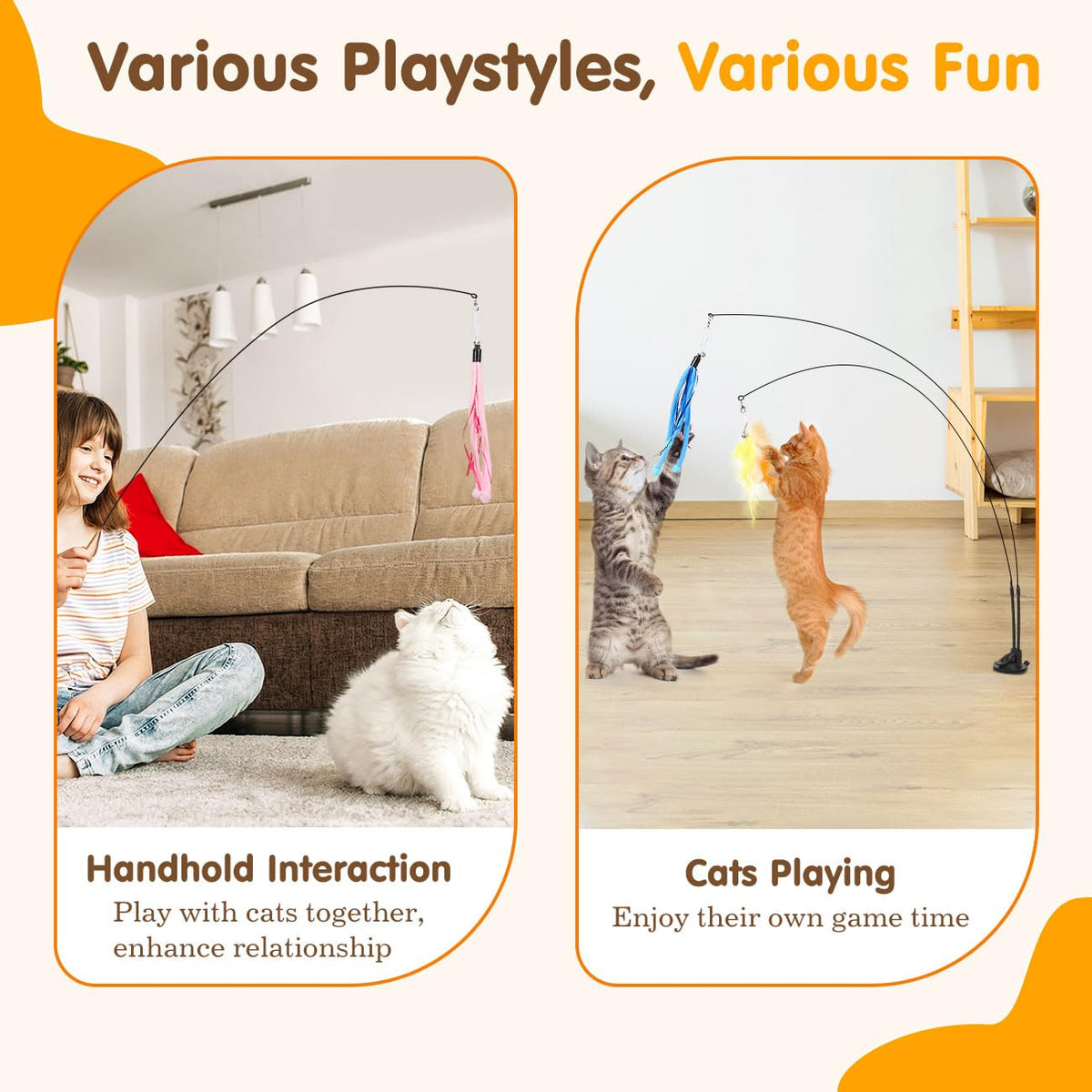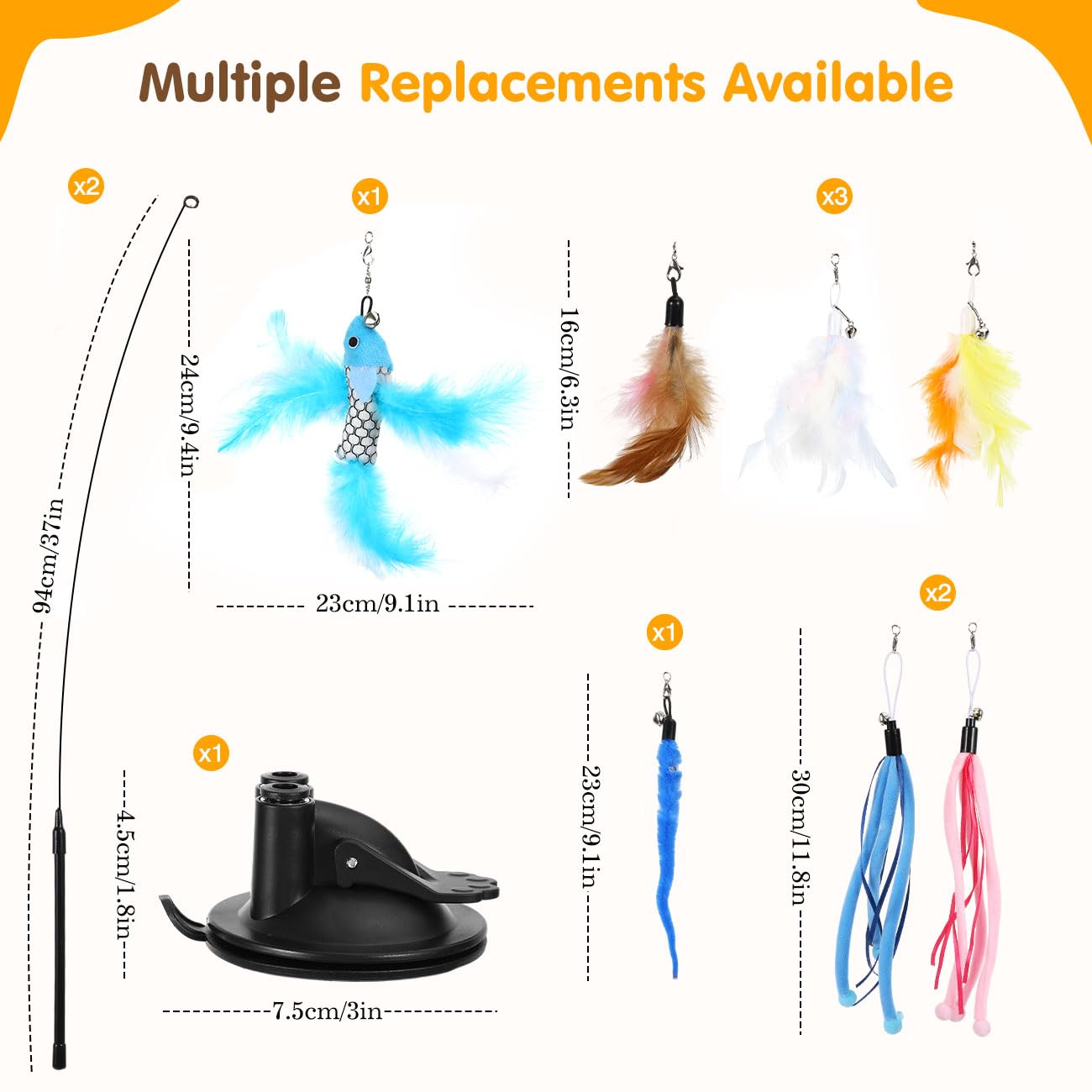 Pawaboo Cat Feather Toys, Interactive Cat Wand Toy With 2-Slot Super Suction Cup, Detachable 2 Pcs Spring Cat Wand & 7 Pcs Cat T