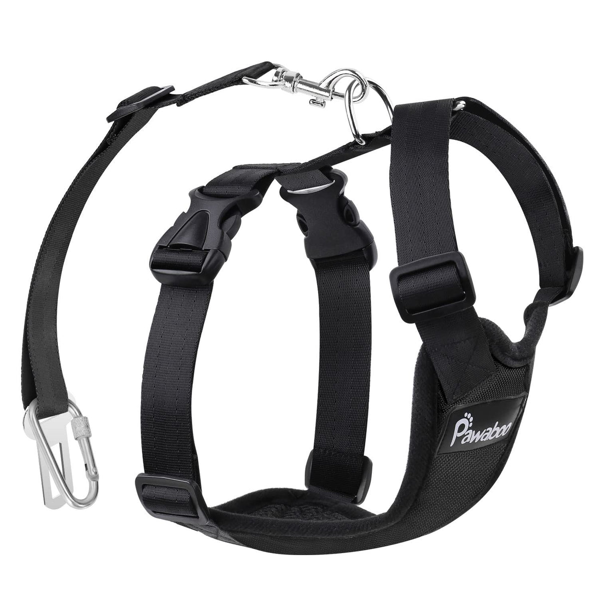 Pawaboo Dog Safety Vest Harness, Pet Car Harness Vehicle Seat Belt With Adjustable Strap And Buckle Clip, Easy Control For Driving Traveling Safety For Small Medium Dogs Cats, Medium, Black