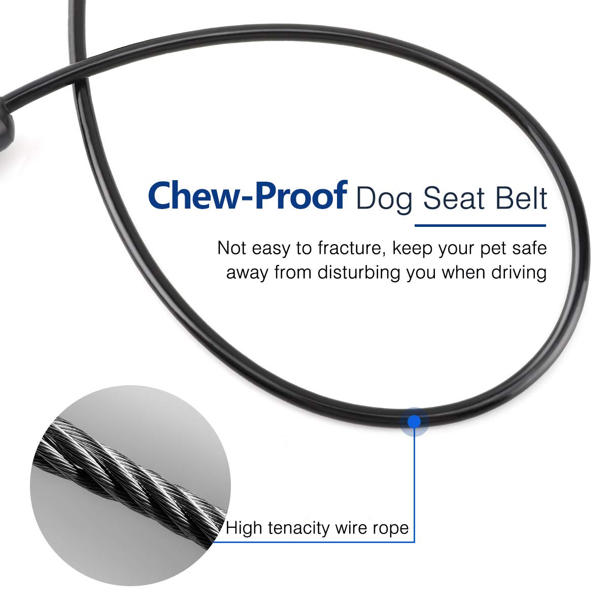 Pawaboo Dogseatbelt, Chew-Proof Leash Extender, Coated Steel Rope Restraint Car Safety Seat Belt Clip Strap, 360° Rotation Hook Heavy Duty Carabiner Steel Cable Dog Headrest Support, 26 Inch, Black