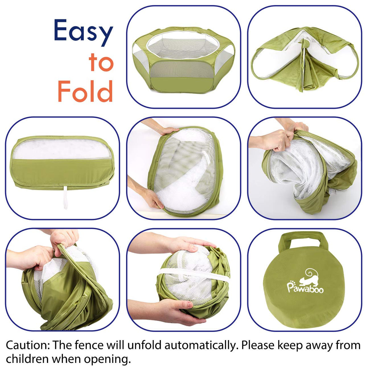 Pawaboo Small Animals Playpen, Waterproof Small Pet Cage Tent With Zippered Cover, Portable Outdoor Yard Fence With 3 Metal Rod For Chick/Kitten/Puppy/Guinea Pig/Rabbits/Hamster/Chinchillas,Green