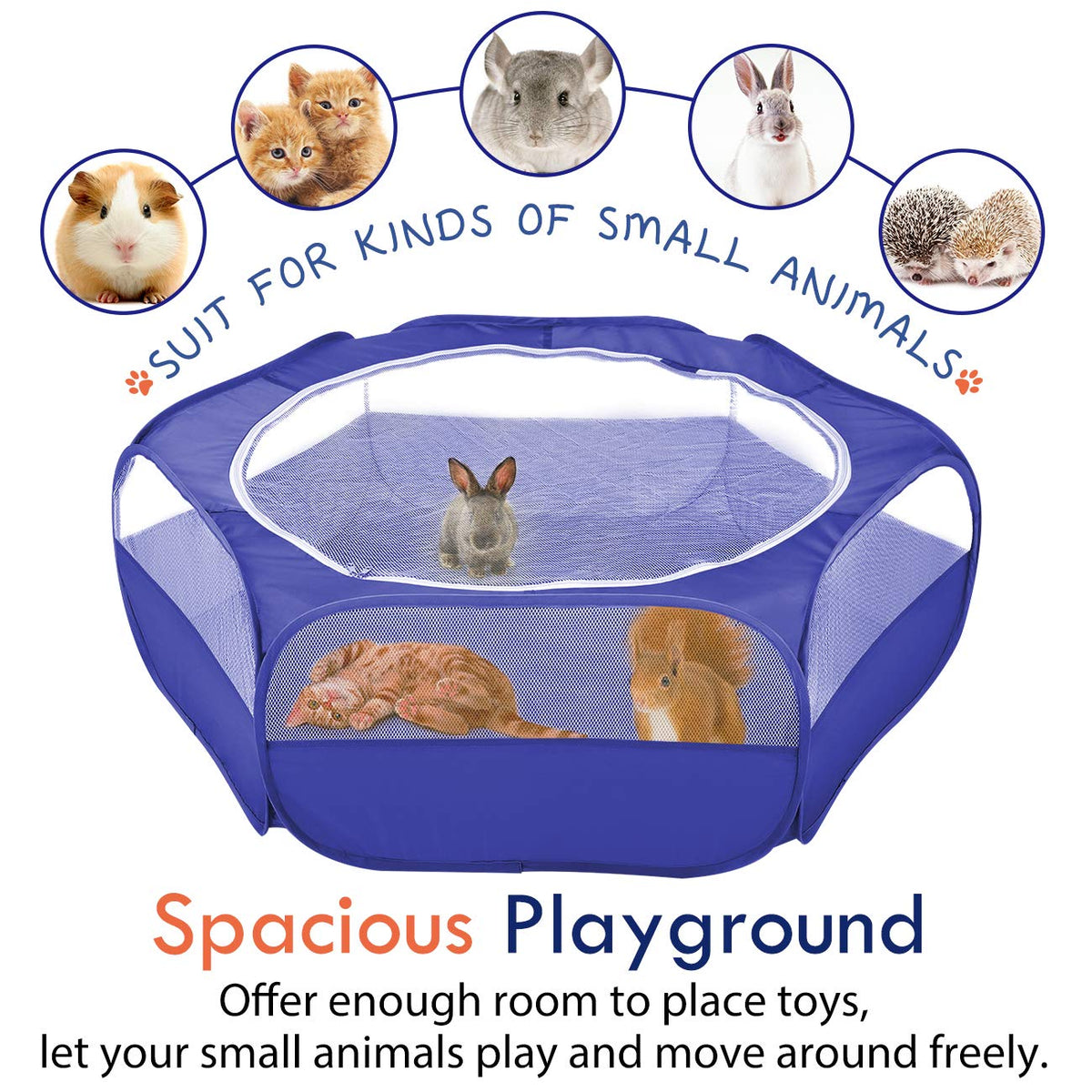Pawaboo Small Animals Playpen, Waterproof Small Pet Cage Tent With Zippered Cover, Portable Outdoor Yard Fence With 3 Metal Rod For Kitten/Puppy/Guinea Pig/Rabbits/Hamster/Chinchillas, Indigo