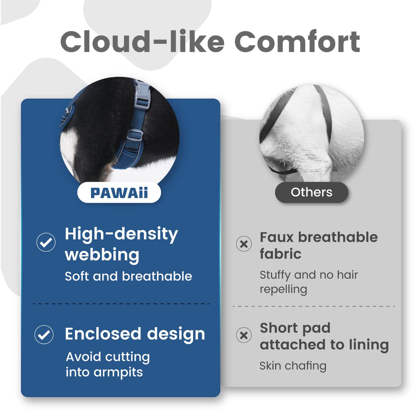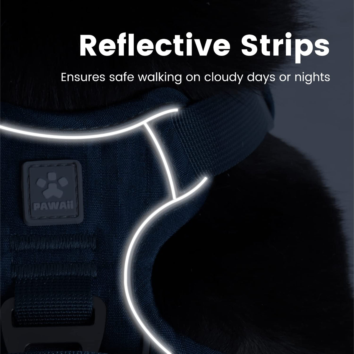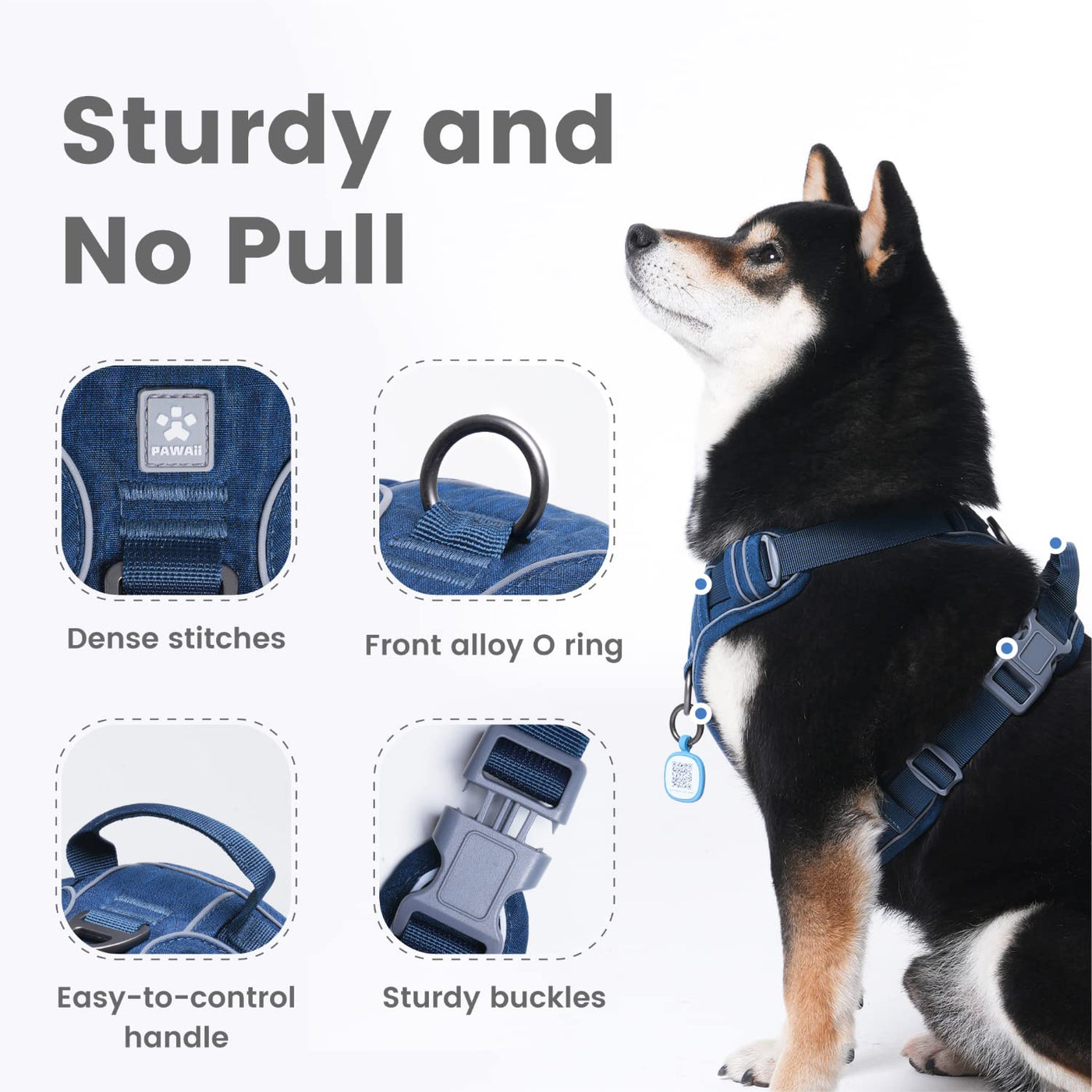 : The dog harness with handle features high-density webbing and 2 sturdy buckles which can withstand 10 000+ plug-pull tests : This no pull dog harness can timely control pulling of your dog by its front O ring and traffic handle and the harness for dog is perfect for daily walking or training : The soft double-padded and breathable mesh fabric of the dog harness is extremely comfortable for dog making outdoor walking easier for your furry friends and you : The high-brightness reflective strips of the pet harness ensure that your pet can be clearly noticed by any angle of view Even at night the dog harness ensures safety of your dog for night walking - : The harness with handle comes with a digital ID tag which only takes 30 seconds for registration When your pet gets lost any finder can scan the QR code on the dog tag to see your contact And the position record will be generated and sent to you by mail