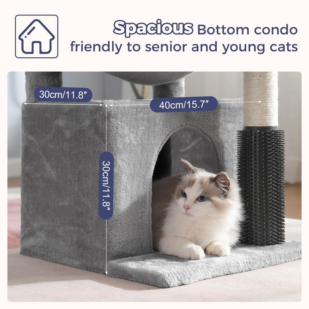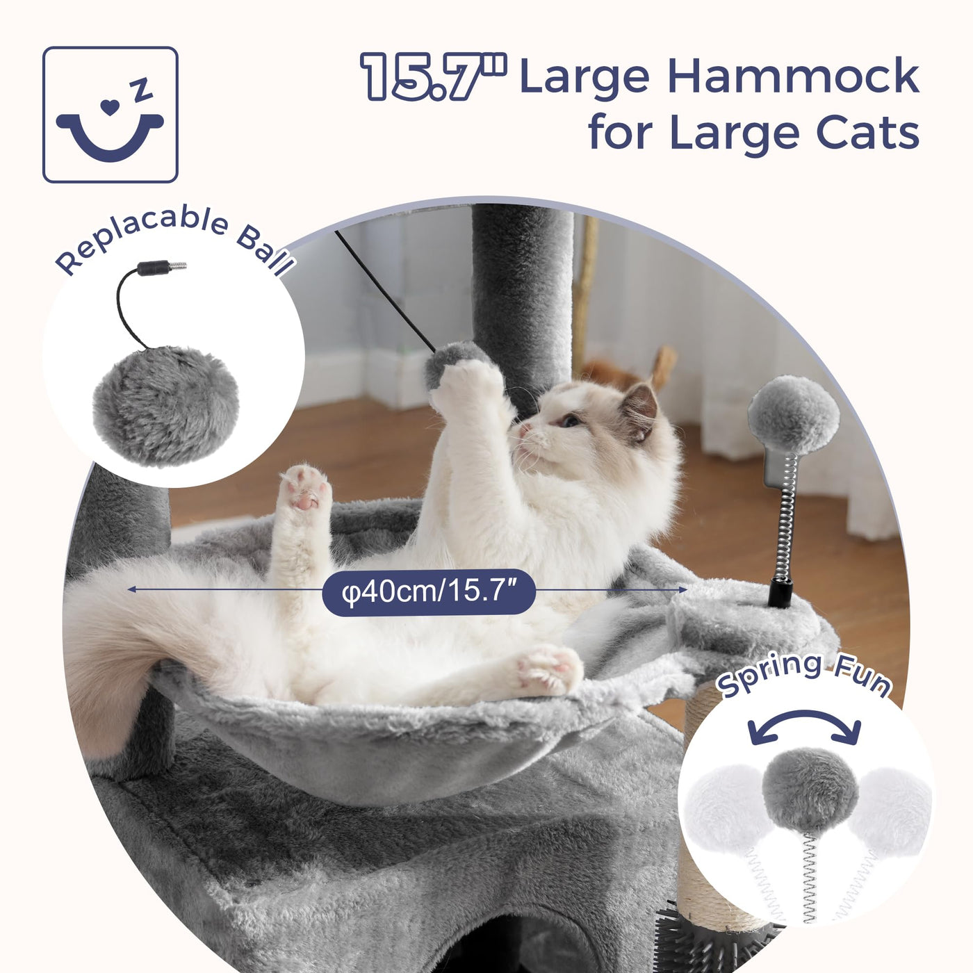 Our Cat Tree Tower Is A Dynamic Blend Of Entertainment And Comfort, Perfect For Both Small Spaces And Larger Areas. This Versatile Cat Tree For Indoor Cats Large Adults, Features A Fully Equipped Scratching Post, Self-Groomer, Spacious Cat Hammock, Cozy Condo, And Removable Perch. It Serves As A Comprehensive Activity Center For Your Beloved Pets. The Innovative Brush Design Provides A Comforting Surface For Your Kittens To Rub Against While Effortlessly Collecting Loose Cat Hair To Keep Your Home Tidy. With A Generously Sized Condo And A Super Large 15.7-Inch Diameter Hammock, This Cat Tree With Hammock Offers Spacious And Comfortable Resting Spots For Cats Of All Sizes. The Removable Padded Perch Is Positioned Perfectly For Window Viewing. The Round Metal Frame Hammock At The Center Enhances Overall Stability And Prevents Potential Falls, Giving You Peace Of Mind Knowing That Your Cats Can Frolic Freely And Safely In This Compact Activity Center. Whether You Need A Small Cat Tree Tower For Indoor Cats Or A Cat Hammock Tower For Larger Breeds, This 36-Inch Cat Tree Fits Seamlessly Into Any Small Space. It'S A Simple Cat Tree Solution That Doesn'T Compromise On Comfort Or Entertainment, Making It Ideal For Any Feline Household.