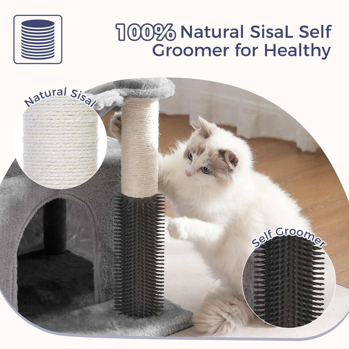 Pawfessor 5 In 1 Cat Tree 32 Inches Cat Tower With Self Groomer,15.7 Large Hammock, Fully Scratching Post, Removable Top Perch