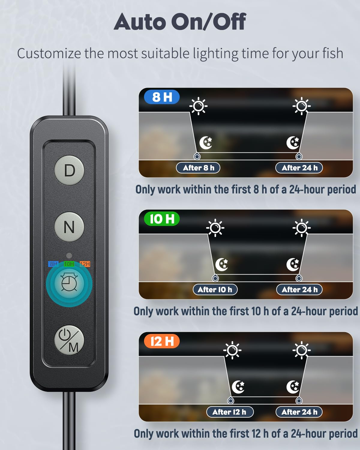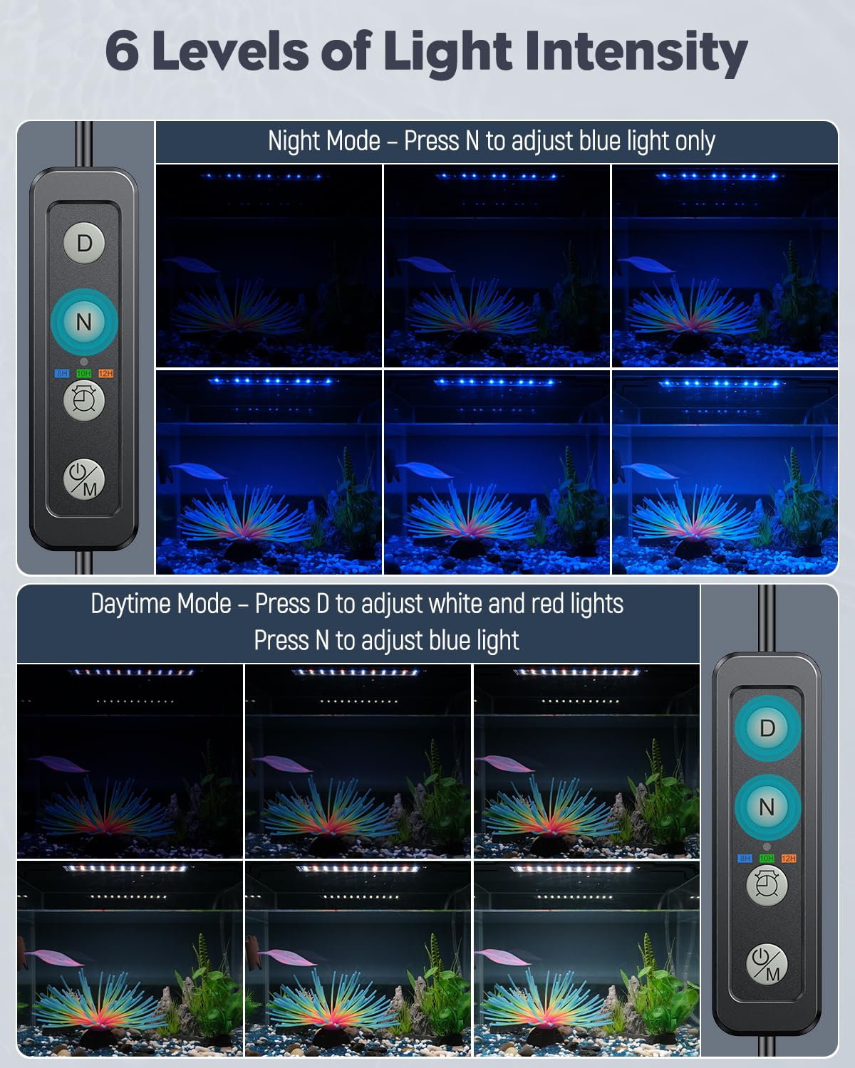 Pawfly 3 W Aquarium LED Light 7.5 Inch Underwater Fish Tank Light with Full Spectrum IP68 Waterproof White Blue Red Lights with Daytime & Night Mode Timer Auto On/Off and Adjustable Brightness