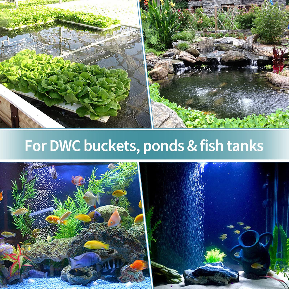 Medium Bubbles: The air stone balls produce abundant dense bubbles A great way to increase oxygen solubility in your aquarium and enliven the aquatic lives Model: ASB050 Jetting volume: 5 Lmin Recommended air pump power: > 4 W Standard ID airline tubing: 316 or 38 Well-built and efficient for long-time service Reliable Material: Made of mineral material and sintered at a high temperature great for aeration in aquariums DWc systems or ponds Keep fish or roots growing healthily Stable in Water: Each ball measures 2 in diameter and weighs 375 oz Well weighted to sink to the bottom and lie stably in your tank without floating up Easy to Use: Soak the stone completely in water for 1 hour before use clean it regularly with a brush as it gets clogged after weeks or months of usage