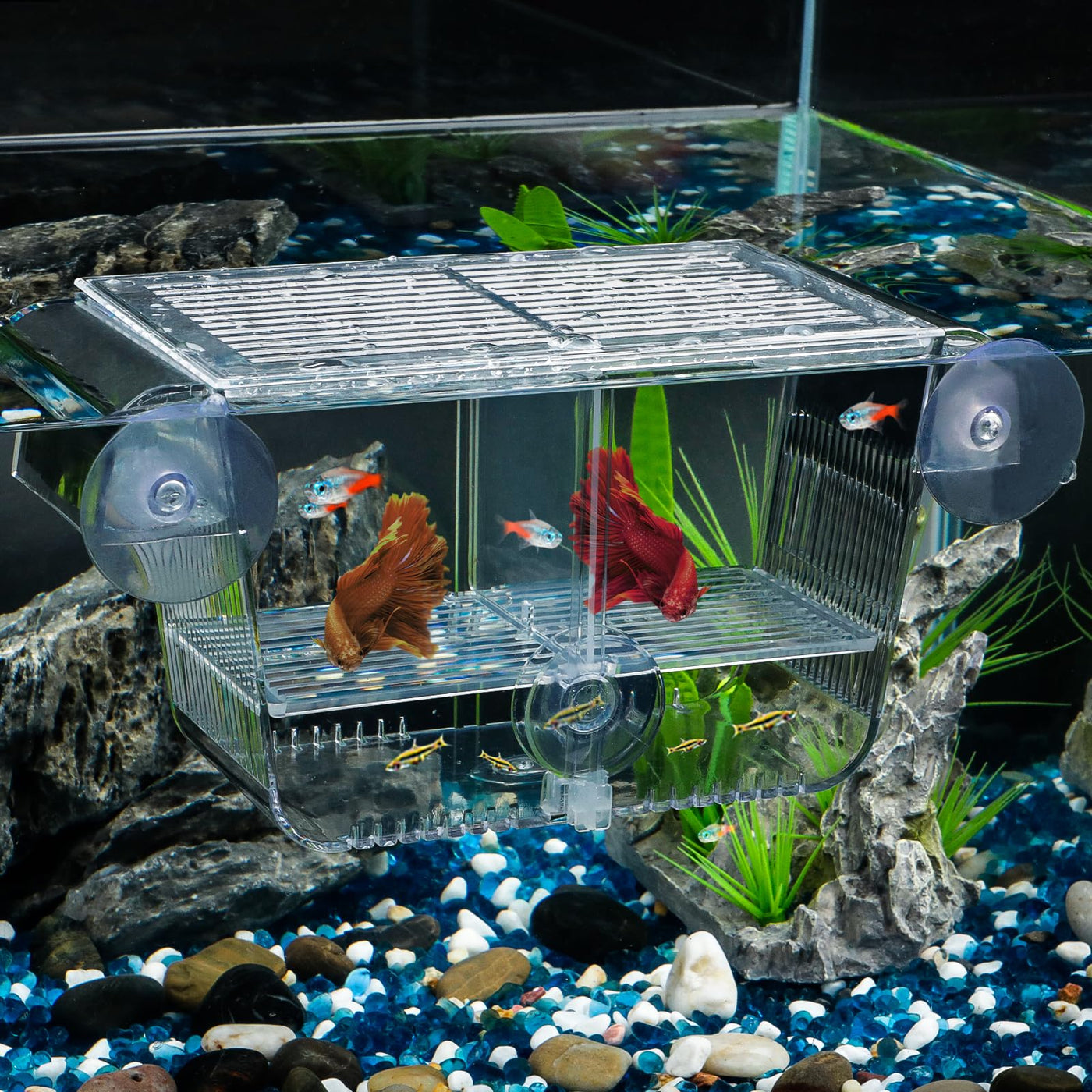 Pawfly Aquarium Fish Breeding Box, Fish Tank Hatchery Incubator With 6 Suction Cups Acrylic Hatching Box For Baby Fish Shrimp Be