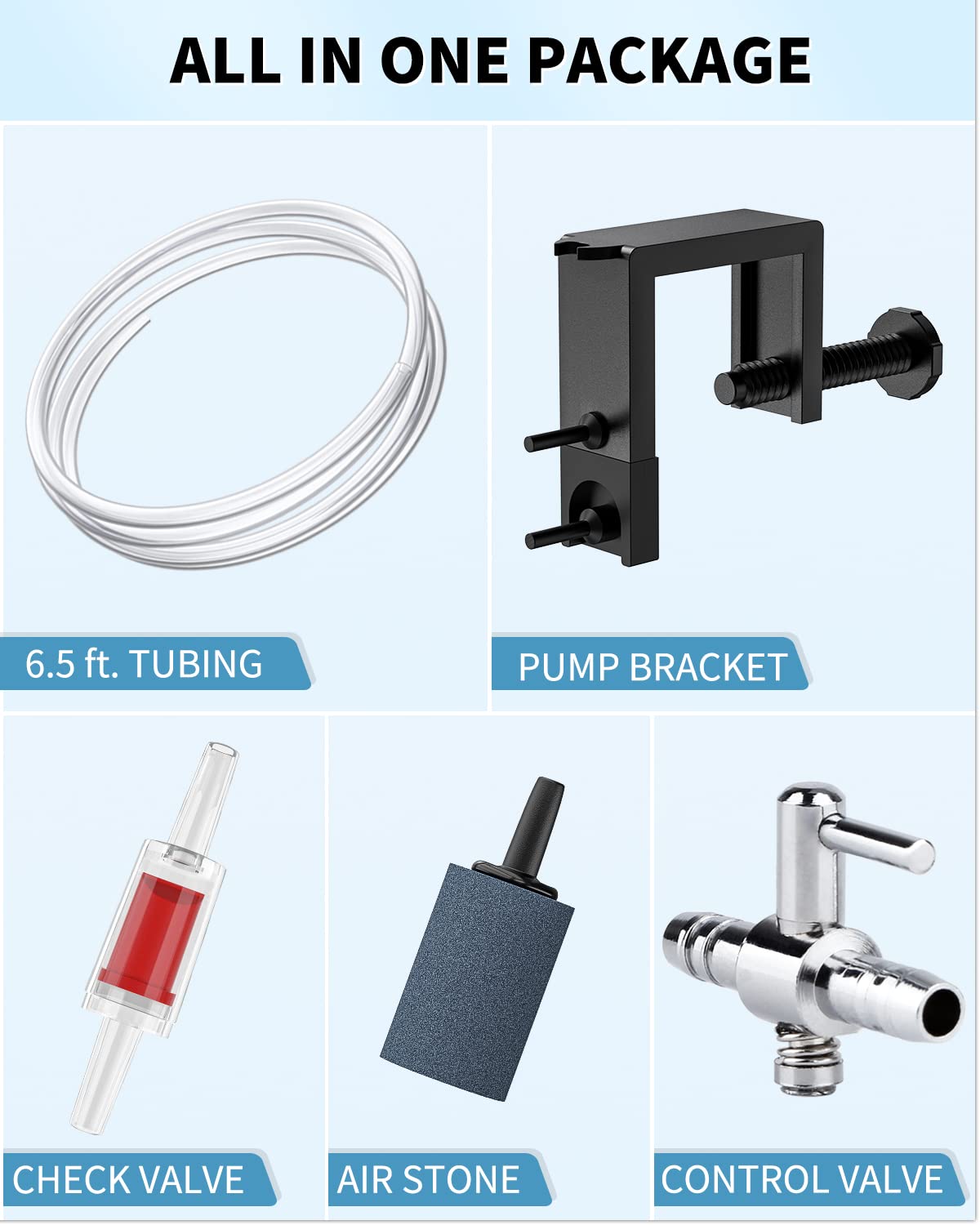 Pawfly Mini Aquarium Air Pump for 3-20 Gallon Nano Fish Tanks 15 GPH Oxygen Aerator Pump with Bracket Airline Tubing Air Stone Control Valve and Check Valve Accessories