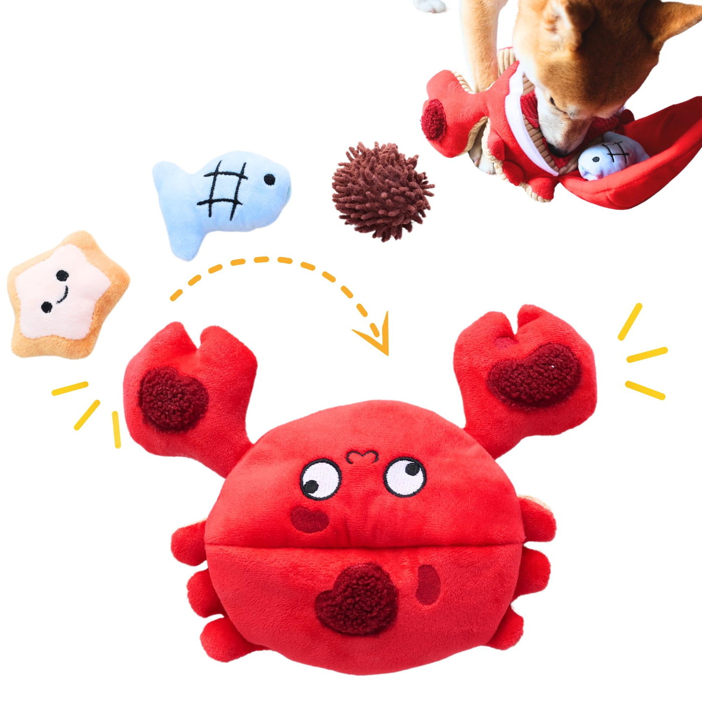 Pawfoo Lab Dog Puzzle Toy, Interactive Snuffle Crab Toy For Small Medium Dogs - Hide & Seek Treat Dispenser With Squeaky & Crink