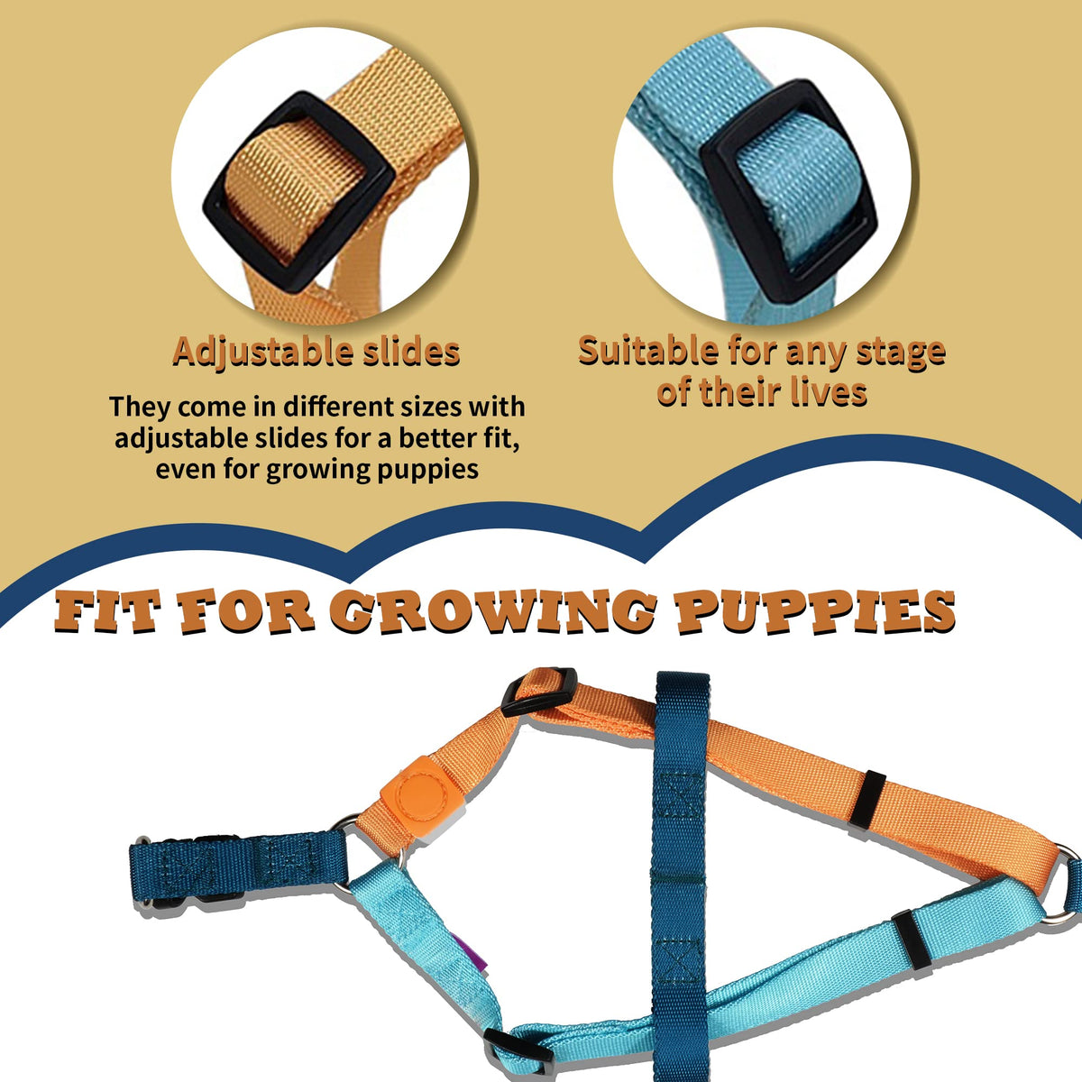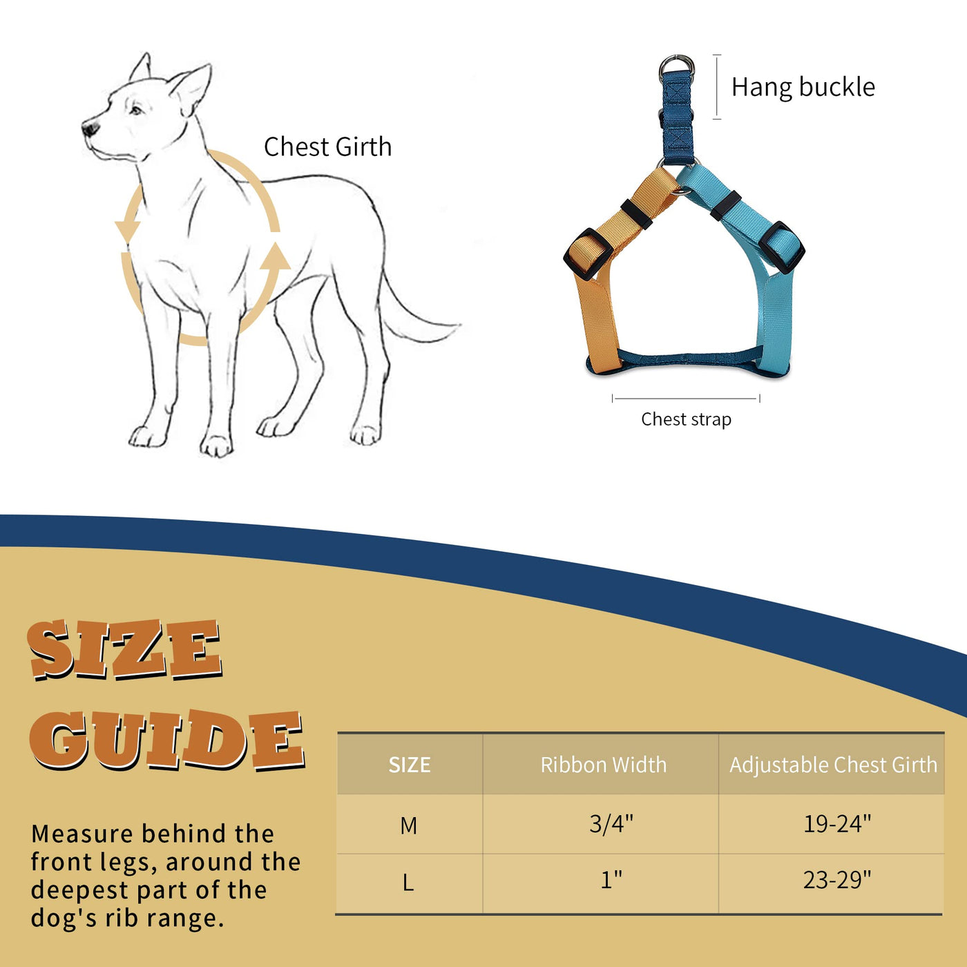 Tri-color Design Novel & Fashionablechoose from a range of vibrant colors to match your pups personality and style Tri-color no pull dog harness will make your dog look more stylish on travel and everyday walks Make your walks with your dog more colorful and joyful Built to LastSturdy and pull-resistant Pawhuggies no pull dog harness can handle even the most rambunctious pups with ease while the breathable material of Pawhuggies step-in design dog harness keeps them comfortable erfect Fitawhuggies no pull dog harness with an adjustable design suitable for small medium and large dogs even for growing puppies for any stage of their life Pawhuggies dog harness offers comfort and security for all furry friends Easy to UseThe quick-release buckle of Pawhuggies no pull dog harness makes it a breeze to put on and take off the harness so your pup can get ready for their walk in no time 4 Sizes Optionawhuggies no pull Dog harnesses are available in 4 sizes Please wrap the tape around the widest part of your dogs torso to measure the chest girth Right behind the front legs For the comfort & fit of your pet remember to leave some space between dog and dog harness