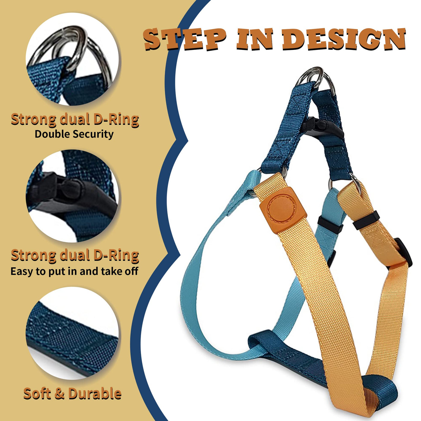 Pawhuggies Tri-color Dog Harness Adjustable Step-In Design No Pull Dog Harness For Medium Dogs No Pull Heavy Duty Puppy Harness Easy Walk Dog Harness Medium Size Dog