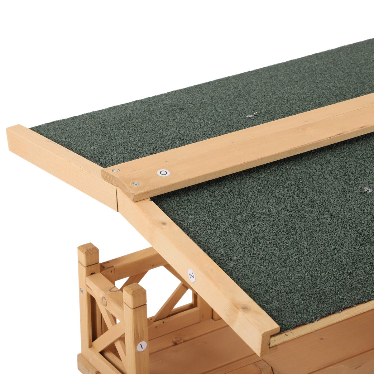 Q: How is the Pawhut cat house constructed for durability?A: The Pawhut cat house is made of high-quality fir wood and features a weatherproof finish, making it durable and suitable for outdoor use. Its raised platform design helps to keep moisture and insects out.