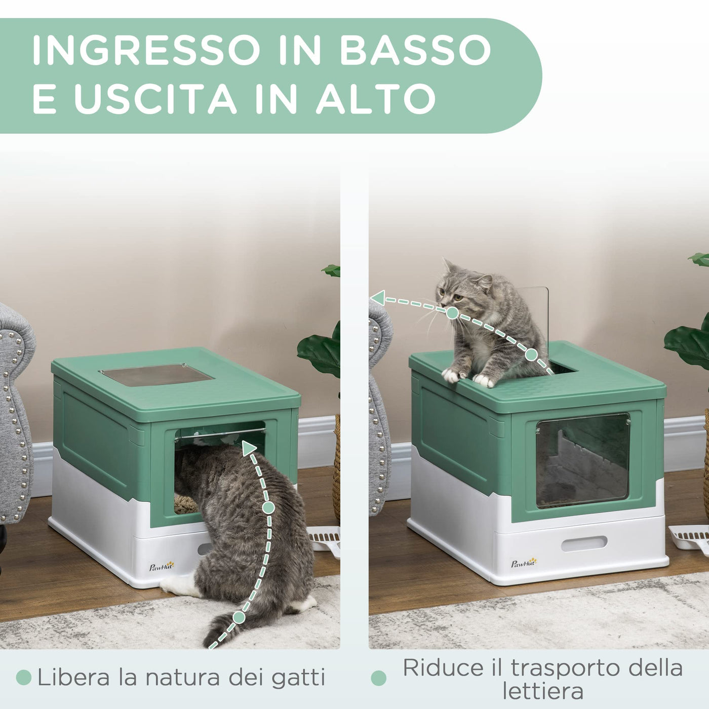 ? Front door entrance and exit from top door ? Includes a scoop for cleaning litter ? Easy to assemble and disassemble ? Large internal space for the cat ? High edges to prevent sand from spilling ? Solid and durable plastic construction ? Assembly required