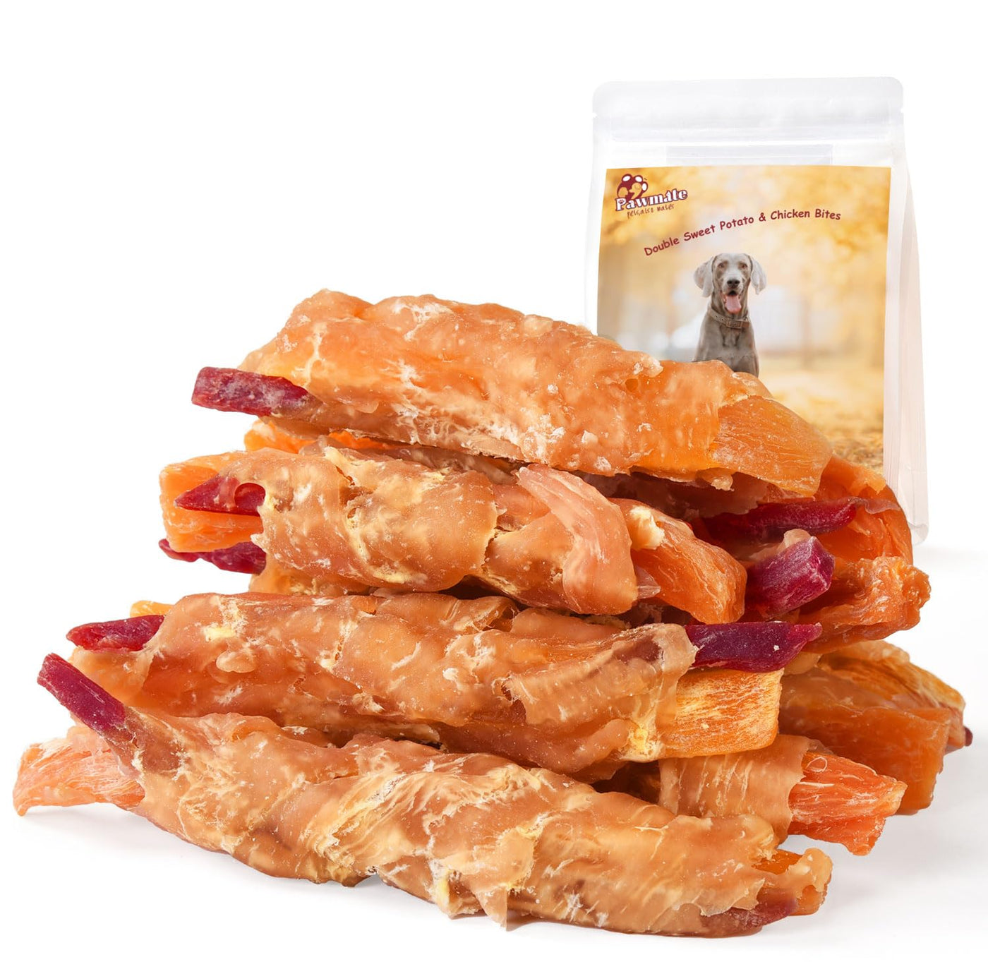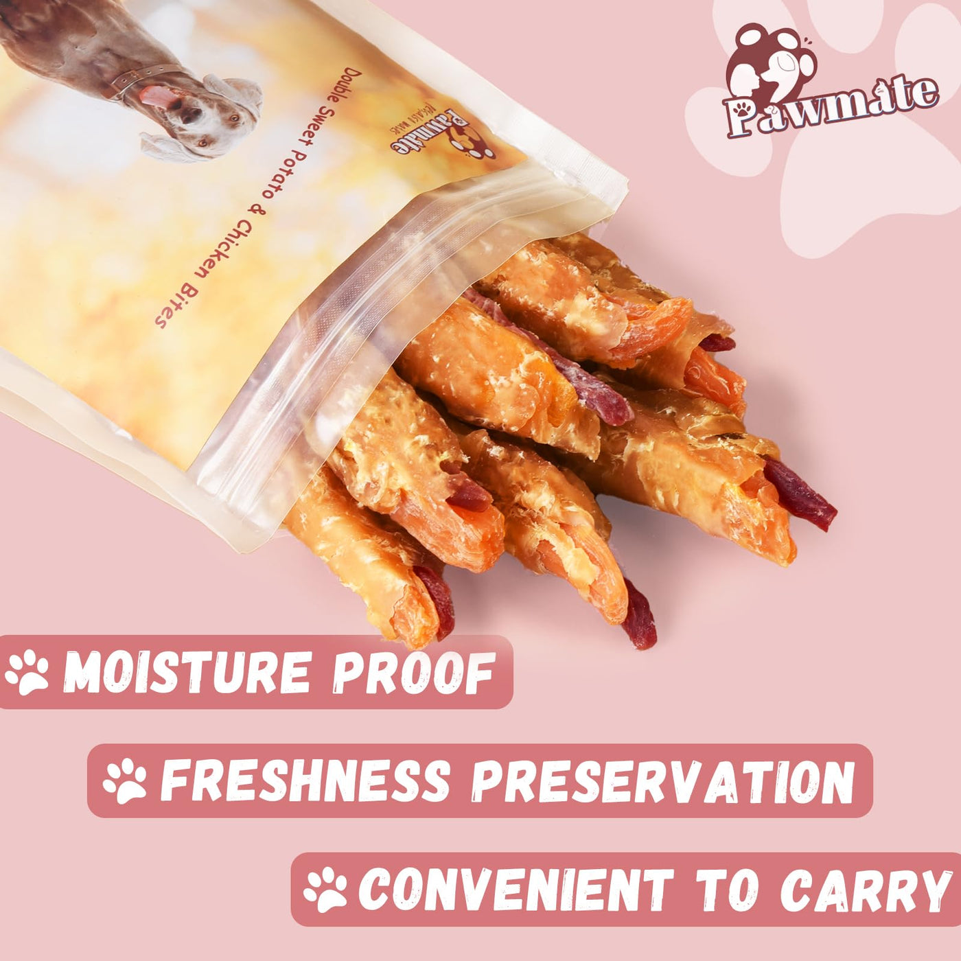 Pawmate Dog Treats, Double Sweet Potato Chicken Jerky Wrapps Healthy Rawhide-Free Dog Treats Chicken Jerky Low Fat High Protein