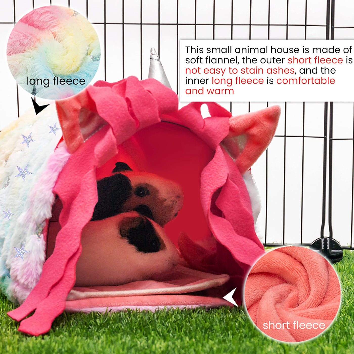 Soft Small Animal House : This pet house is made of soft flannel. The short fleece on the outside is not easy to stain ashes and the long fleece on the inside is comfortable and warm suitable for small animals to sleep or play inside. (In order to be able to use it for a long time we recommend washing the house by machine or by hand but the mat and transparent plastic board only support hand washing.)