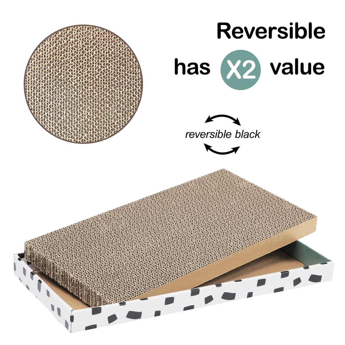 PAWSFANS cat scratchers is the smart and economical way.It can be used to sharpen PAWS to avoid damaging furniture, scratching people or hurting your own PAWS.It can also be used as a place for them to play or sleep, keeping your pet smart and active The 3-pack Cat Scratch pad is reversible and thus has X2 value, and made of eco-friendly and recyclable corrugated scratcher cardboard, box design make the floor clean. It s also extremely durable being made of heavy-duty cardboard material. 100% recycled cardboard and non-toxic corn starch glue. Perfectly healthy for your adorable cats. Size:17.5 x 9.5 x 1.5 inches Contains 3 packs of Cat Scratch and 3 packs of Catnip Ideal for any living room, bedroom, or home office.Neutral tones match the existing decor in your home Feel free to contact us if you need any help of the product.Email to our customer care specialists 7 days a week with any questions. We are waiting to assist you and your pet.