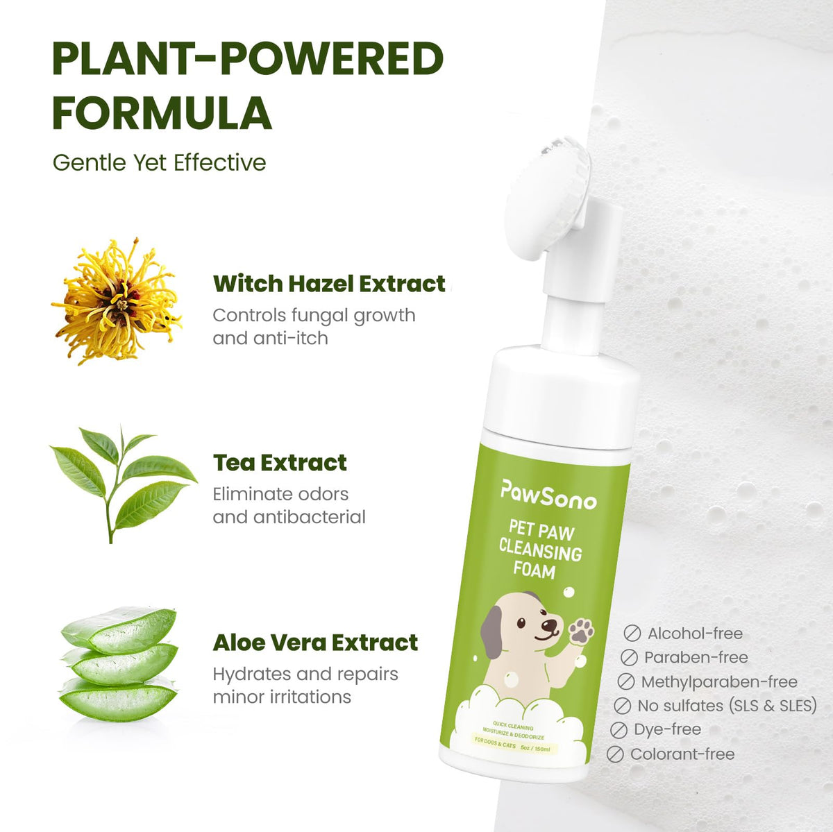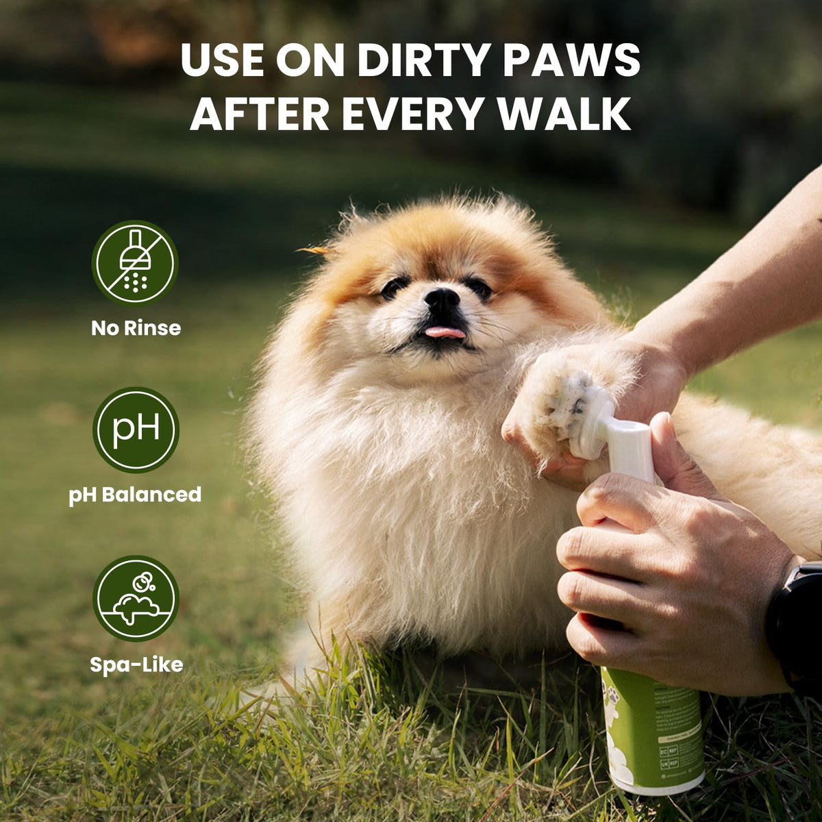 Our Dog Paw Cleaner Is A Convenient And Efficient Solution For Keeping Your Pets Paws Clean, Fresh, And Healthy. Designed With Both Pets And Pet Parents In Mind, This Innovative Cleaner Features A Built-In Silicone Brush That Gently Scrubs Dirt, Mud, And Odors From Between Your Pets Toes And Pads, Without The Need For Water. The Soft Brush Head Is Perfect For Sensitive Paws, Ensuring A Gentle Yet Effective Clean. Formulated With Natural, Plant-Based Ingredients Such As Tea Extract, Aloe Vera Extract, And Hamamelis Virginiana Extract, This Paw Cleaner Provides A Soothing And Moisturizing Experience, Making It Ideal For Pets With Sensitive Skin. It Is Free From Harmful Chemicals Such As Alcohol, Parabens, Sulfates, And Colorants, Ensuring Its Safe For Your Furry Friend. The Ph-Balanced Formula (6.3-7) Helps Protect Their Natural Oils While Leaving Their Paws Feeling Soft And Refreshed. Unlike Traditional Dog Paw Washer Cups Or Wipes, Our Dog Foot Washer Offers Superior Cleaning Power Without The Hassle. It Not Only Removes Dirt And Mud But Also Helps Deodorize And Reduce Inflammation, Keeping Your Pets Paws Healthy And Clean. The No-Rinse Formula Makes It An Excellent On-The-Go Solution, Perfect For Trips, Hikes, Or Quick Cleanups After Walks, Camping, Or Playtime At The Beach. Compact And Easy To Use, The 5 Fl Oz Size Is Perfect For Storing In Your Bag, By The Door, Or In The Car. Simply Apply Foam To The Soft Silicone Bristles, Gently Massage Into Your Pets Paws, And Wipe Them Dry-No Water Required. Its An Effortless Way To Maintain Cleanliness While Protecting Your Home From Paw Prints. This Paw Cleaner For Small/Medium/Large Dogs Is Suitable For All Breeds And Sizes Of Dogs And Cats, Making It A Versatile Addition To Your Pet Care Routine. Whether Youre Cleaning Your Pets Paws After A Walk, Managing The Mess From Puppy Pads, Or Helping Older Cats Keep Their Paws Clean, This Cat Paw Cleaner Is Designed For Maximum Convenience And Effectiveness. Specifications: - Product Type: Pet Paw Cleaner - Size: 5 Fl Oz (150 Ml) - Formula: No-Rinse, Ph-Balanced, Alcohol-Free - Key Ingredients: Tea Extract, Aloe Vera Extract, Hamamelis Virginiana Extract - Safe For: Dogs And Cats Of All Sizes - Usage: Apply Foam, Massage Gently, Wipe Dry - Storage: Keep In Bag, By The Door, Or In The Car For On-The-Go Cleanups