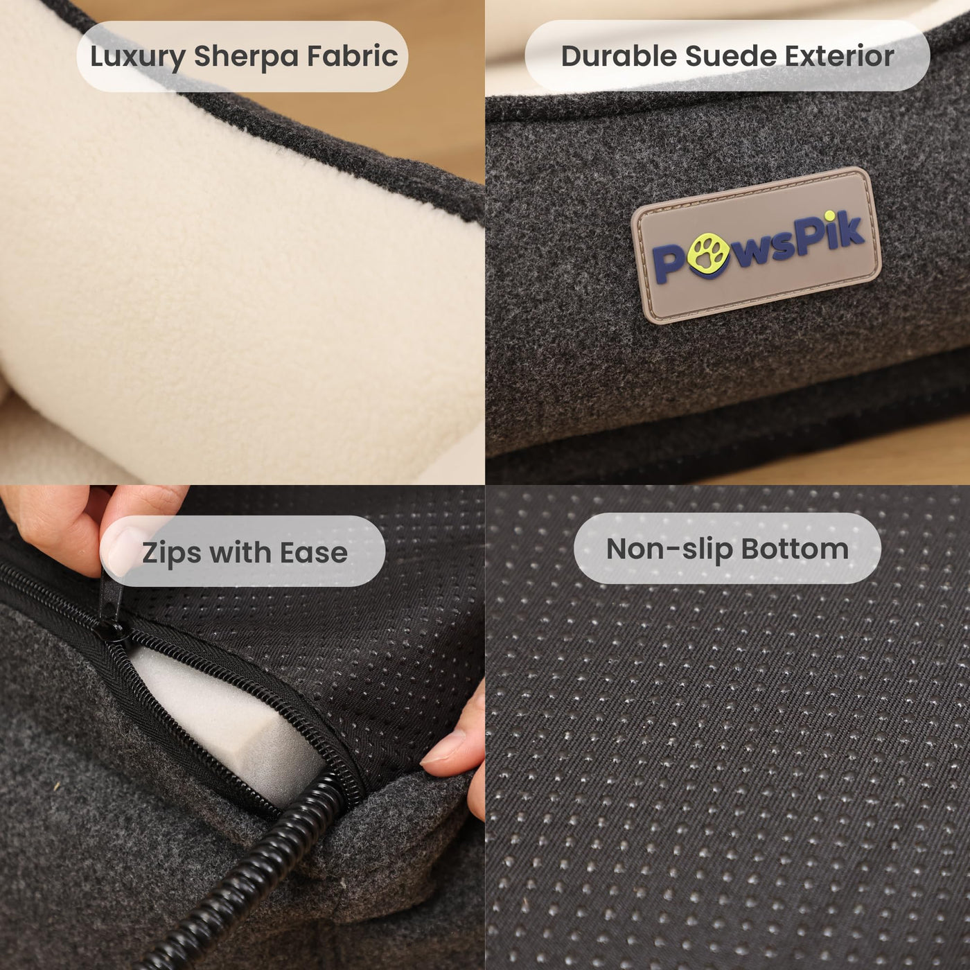 Pawspik Heated Cat Bed, Heated Dog Bed For Pets Indoor, Electric Pet Bed Warmer For Cats And Dogs (Charcoal And Ivory)
