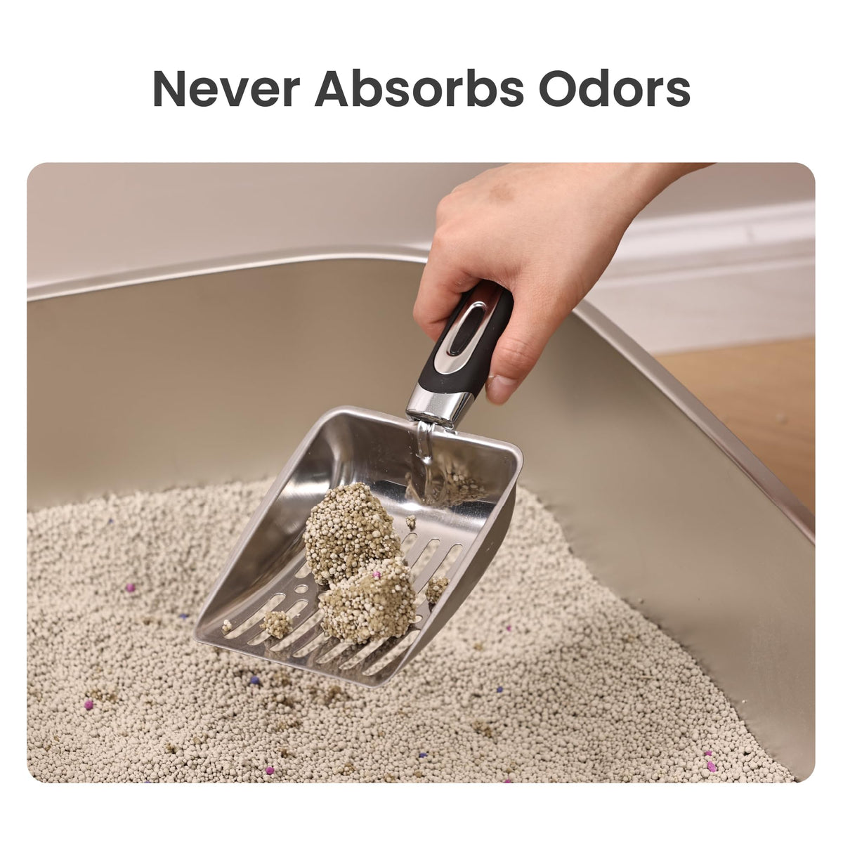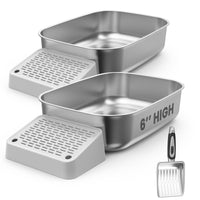 Pawspik Stainless Steel Cat Litter Box With Steps & Metal Scooper, X-Large, 2 Pack, 23 X 16.5 X 6