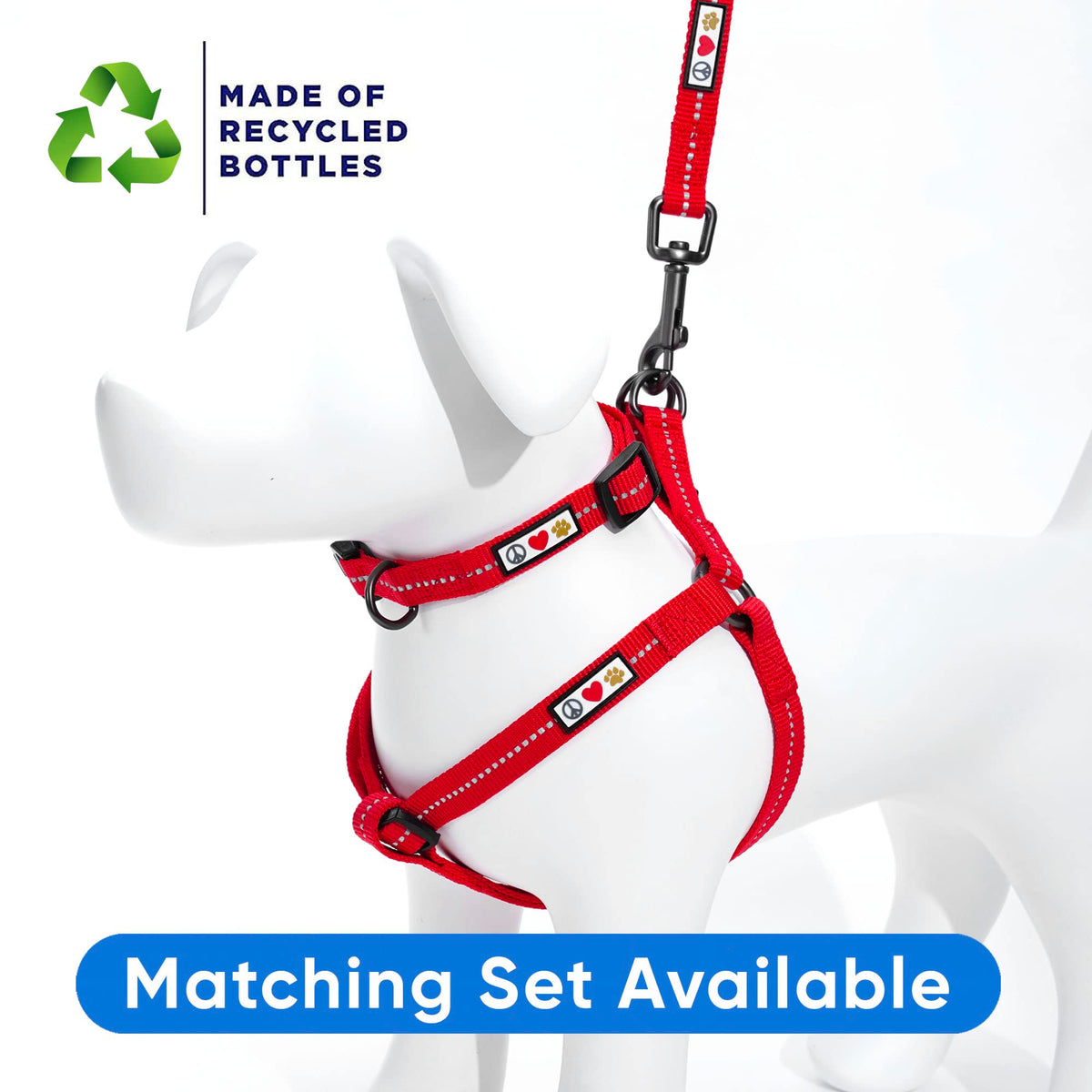 Pawtitas Recycled Dog Harness With Reflective Stitched A Puppy Harness Made From Plastic Bottles Collected From Oceans Large Red