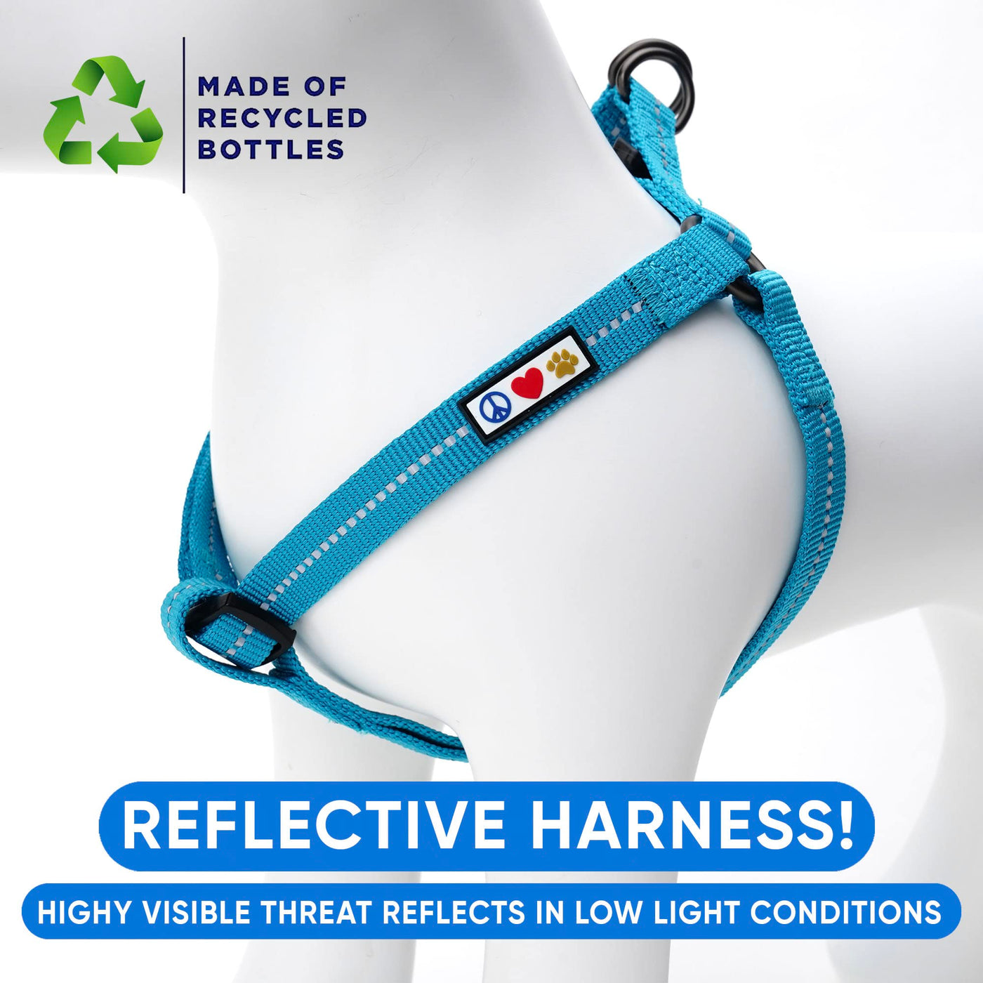 Pawtitas Recycled Reflective Dog Harness Always Walk In Style Anywhere Your Adventures Take You With The Pawtitas Recycled Dog Harness. Thanks To Its Wide-Fitting Design, Its Ultra-Wearable For Any Walk, Trot, Or Stroll Around The Block Or Far Yonder. Its Perfect For Day Or Night, Since Its Sewn-On Reflective Stitching Is Designed To Reflect Light From The Environment-Ambient Light-Even In Low Light Conditions, Providing Maximum Visibility When You Need It Most. Plus, Because Its Made With One Solid Strip Of Reinforced Rip-Stop Nylon-A Special Weaving Technique That Makes It Resistant To Tearing And Ripping-It Is Extra Durable For Everyday Wear. Safety And Style For An Important Part Of Your Family. Pawtitas Adjustable Recycled Reflective Harness Is Available As An Extra Small Dog Harness, Small Dog Harness, Medium Dog Harness Or Large Dog Harness, Suitable From The Small Dog To A Large Dog. Pawtitas Woven Reflective Line, Will Keep The Furry Part Of Your Family Safe And Comfortable From Dawn To Dusk. Durable Materials With Reflective Stripe Sewn Into The Nylon, Pawtitas Products Will Last From Years To Come. We Know We All Are Unique So Is Your Dog For That Reason Our Reflective Dog Collar Is Available With A Great Color Selection, Providing Maximum Visibility When Your Puppy Needs It The Most.
