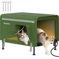 Pawtners Heated Cat House For Outside, Outdoor Insulated Kitty Shelter With Heated Pad And Escape Door, Warm Cozy Pet House Cove