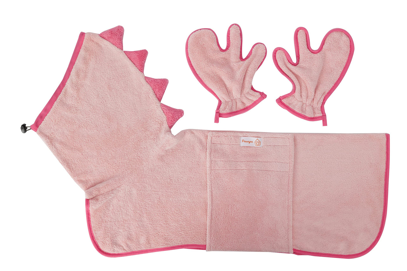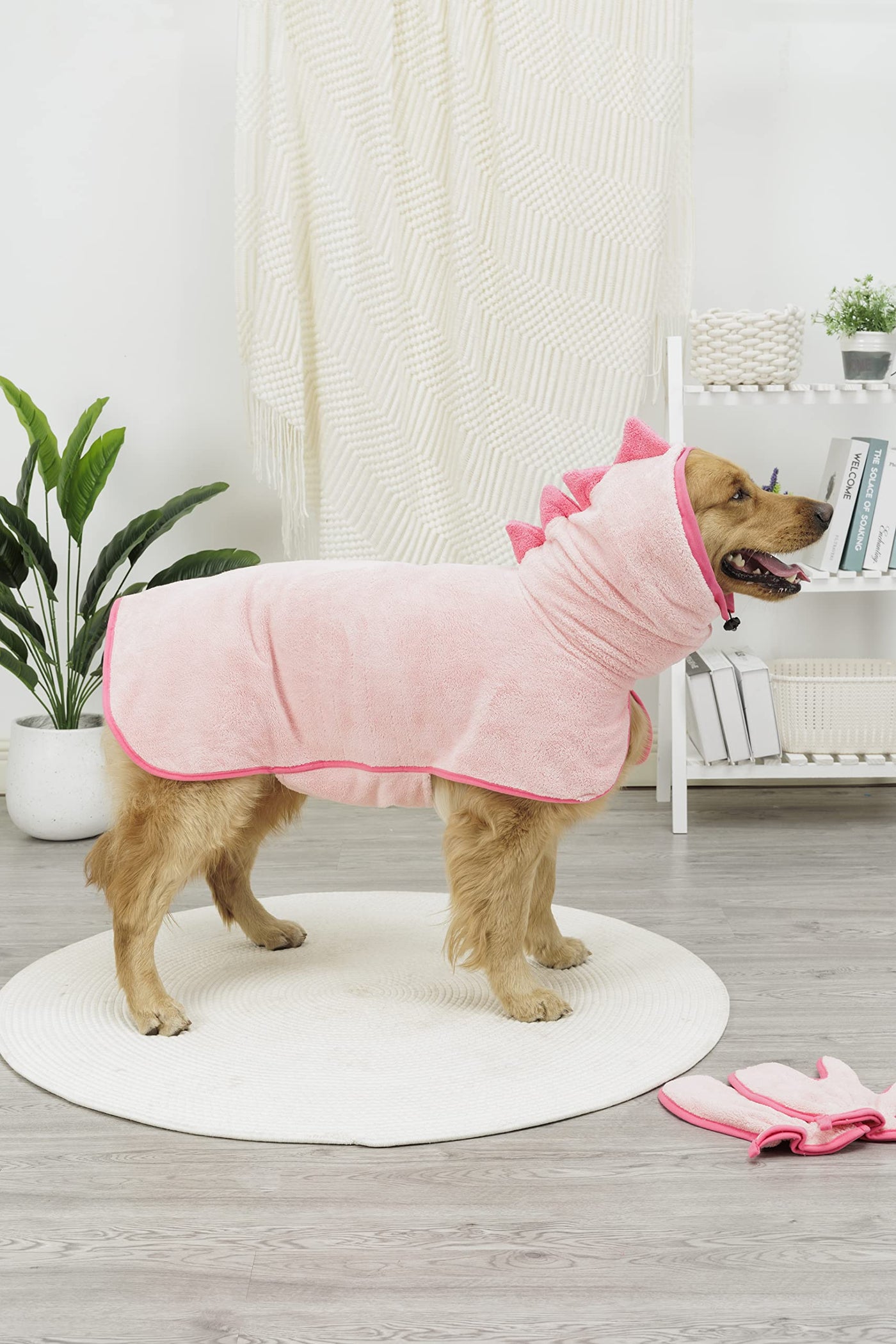 Pawyee Super Soft Fast-Drying Dog Towel Microfiber Bath Robe Design For Cats And Dogs (Medium, Pink Dino)