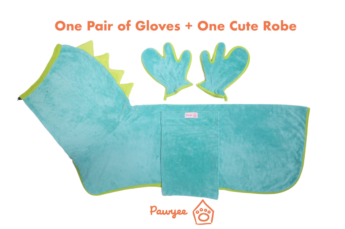 Pawyee Super Soft Fast-Drying Dog Towel With Drying Gloves For Cold Weather, Beach, Pool - Adjustable Microfiber Bath Robe Set (