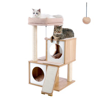 Q: What materials are used in the construction of the cat tree?A: The PAWZ Road Cat Tree is made from high-quality wood, plush fabric, and sisal, ensuring durability and providing a comfortable space for your cat to play, scratch, and rest.