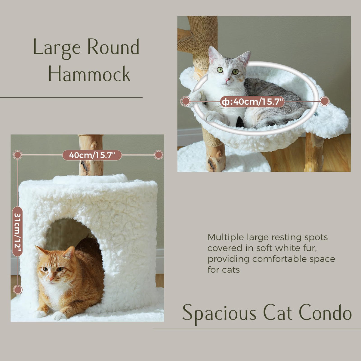 Pawz Road Cat Tree For Indoor Cats Large Adults, 59 Inches Modern Cat Tower With Large Basket And Hammock, Natural Solid Wood, L