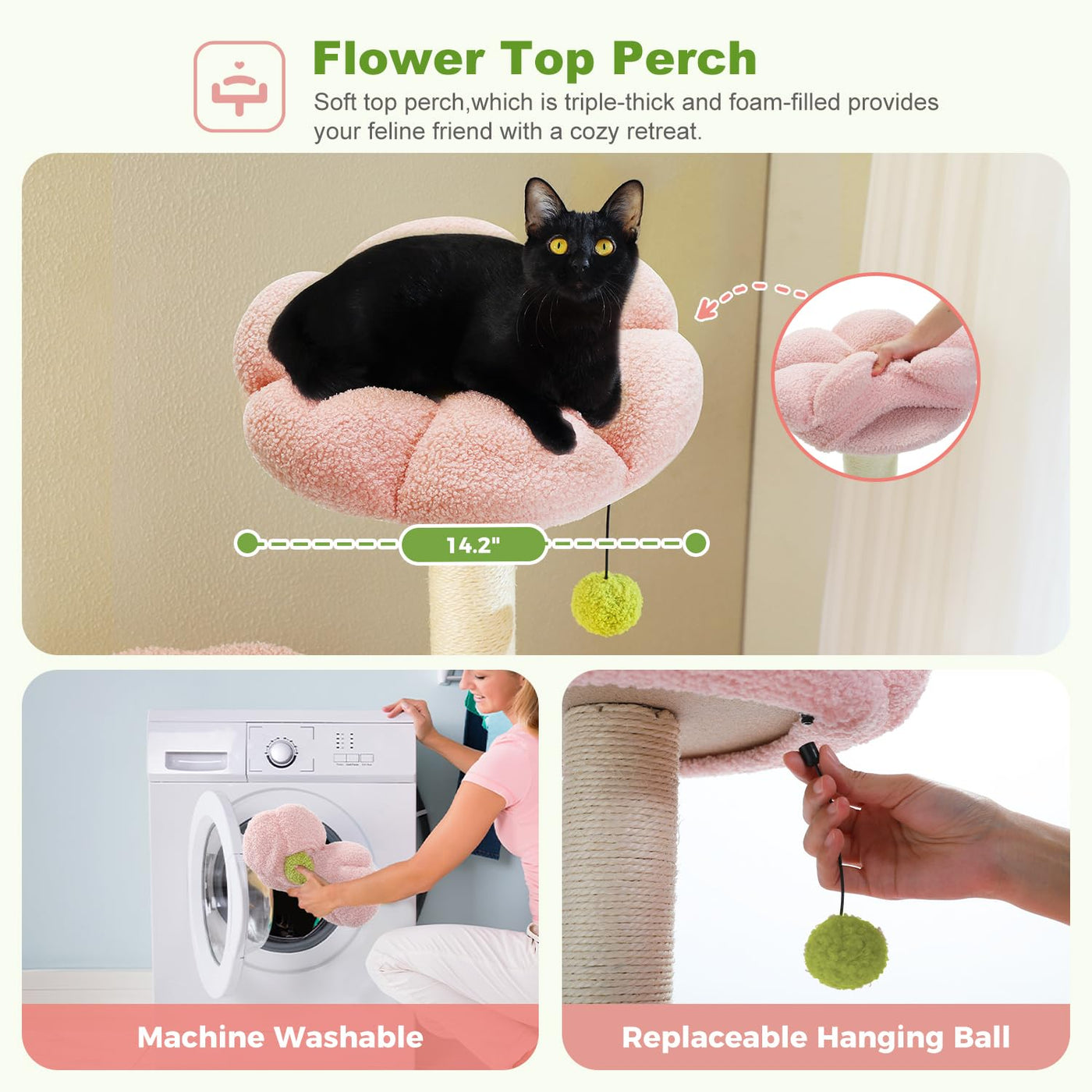 Introducing The Pawz Road Pink Flower Cat Tree Tower, A 62 - Inch Cat Tower For Indoor Cats That Seamlessly Merges Functionality With Aesthetic Charm. This Tall Cat Tree Isnt Just Furniture; Its A Delightful Addition To Your Home, Tailored For Your Feline Companions. As A Unique Cat Tree, It Captivates With Its Charming Flower - Shaped Design, Making It An Aesthetic Cat Tree That Harmonizes With Various Home Decors. This Pink Cat Tree Showcases A Pleasing Blend Of Pink And Green, Crafting A Visually - Appealing Look. Its A Cute Cat Tree That Effortlessly Integrates Into Your Living Space, Adding A Stylish Touch. Whether Viewed As A Pink Cat Tower Or A Flower Cat Tree, Its Harmonious Colors Render It Suitable For Any Corner-Even As A Corner Cat Tree. Featuring Flower - Like Shapes On The Top Perches (14.2 ) And Platform (11.8 ), This Flower Cat Tree Offers An Exceptional Climbing And Resting Experience. Its A Cat Climbing Tower Thats Both Adorable And Functional, Becoming A Feline Favorite And A Standout Home Piece. The Cute Cat Tree Includes Two Large, Plush - Lined Condos (15.8''X10.6''X9.5''), Ideal For Relaxation And Play. As A Cat Tree For Indoor Cats, It Provides A Quiet, Private Space, Catering To Their Natural Need For Security. Equipped With 4 Sturdy Scratching Posts And A Board (9 X7.9 ), This Cat Tree With Scratching Post Fulfills Your Cats Scratching Instinct. It Safeguards Your Furniture While Keeping Your Cat Engaged, With High - Quality Sisal Ensuring Durability. Engineered For Safety, This Cat Tree Tower Has A Reinforced Base (18.9 15.8 ) For Stability. The Anti - Tip Kit Allows Secure Wall Anchoring, Preventing The Cat Tree From Toppling. Whether Your Cat Is Jumping Or Resting, This Cat Tower For Indoor Cats Remains Steadfast. Assembly Is A Breeze With Pre - Drilled Parts And A Guide. Pawz Road Offers Excellent Support, Ensuring A Worry - Free Purchase. This Cat Tree Pink Isnt Just A Product But A Long - Term Solution For Your Cats Happiness. In Summary, This Pawz Road Pink Flower Cat Tree Is A Perfect Fusion Of Style And Practicality. Its A Cat Tree Cute, Unique, And Functional-Ideal For Any Cat Owner Aiming To Elevate Their Pets Lifestyle While Preserving A Beautiful Home Environment.