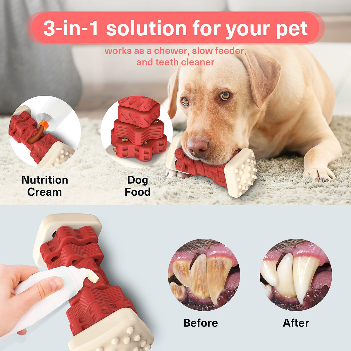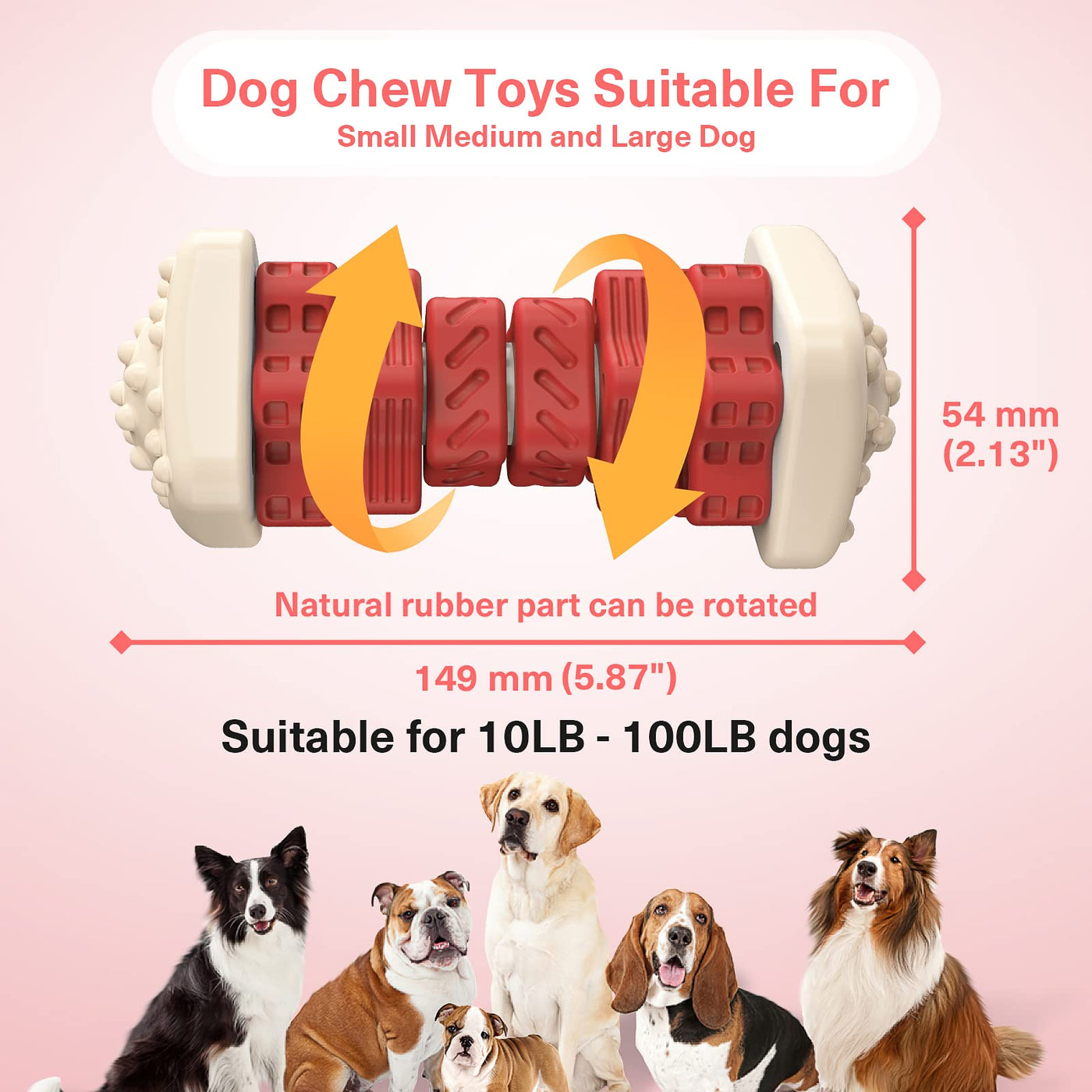 Pceotllar Dog Toys For Aggressive Chewers, Indestructible Dog Chew Toys, Safe Rubber, For Large Medium Small Dogs - Red -M