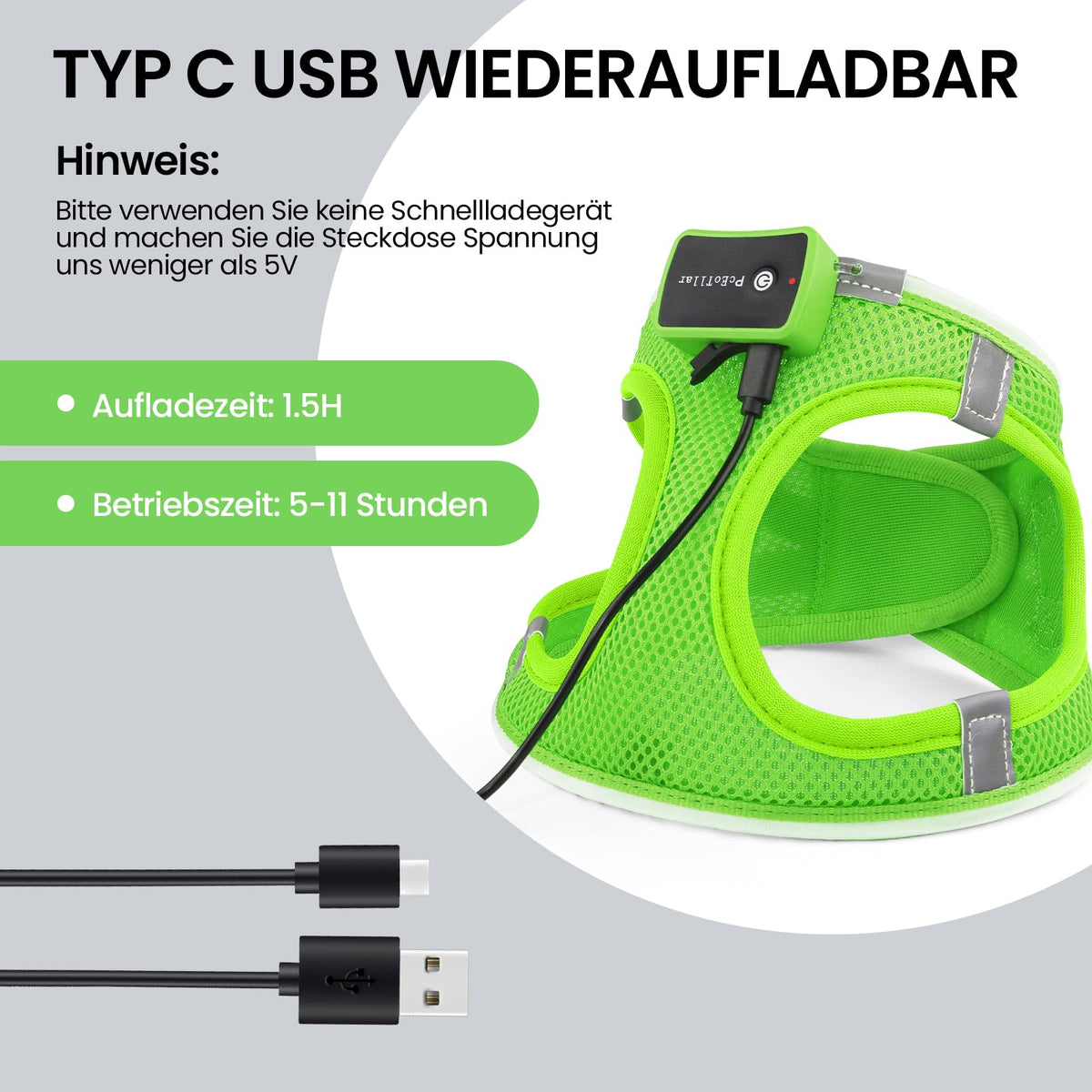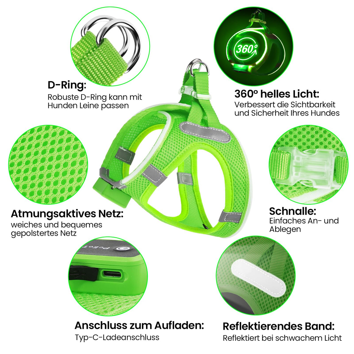 Pceotllar Light Up Dog Harness, Led No Pull Reflective Dog Harness, Flashing Lighted For Night Walking - Small/Medium, (Green M)