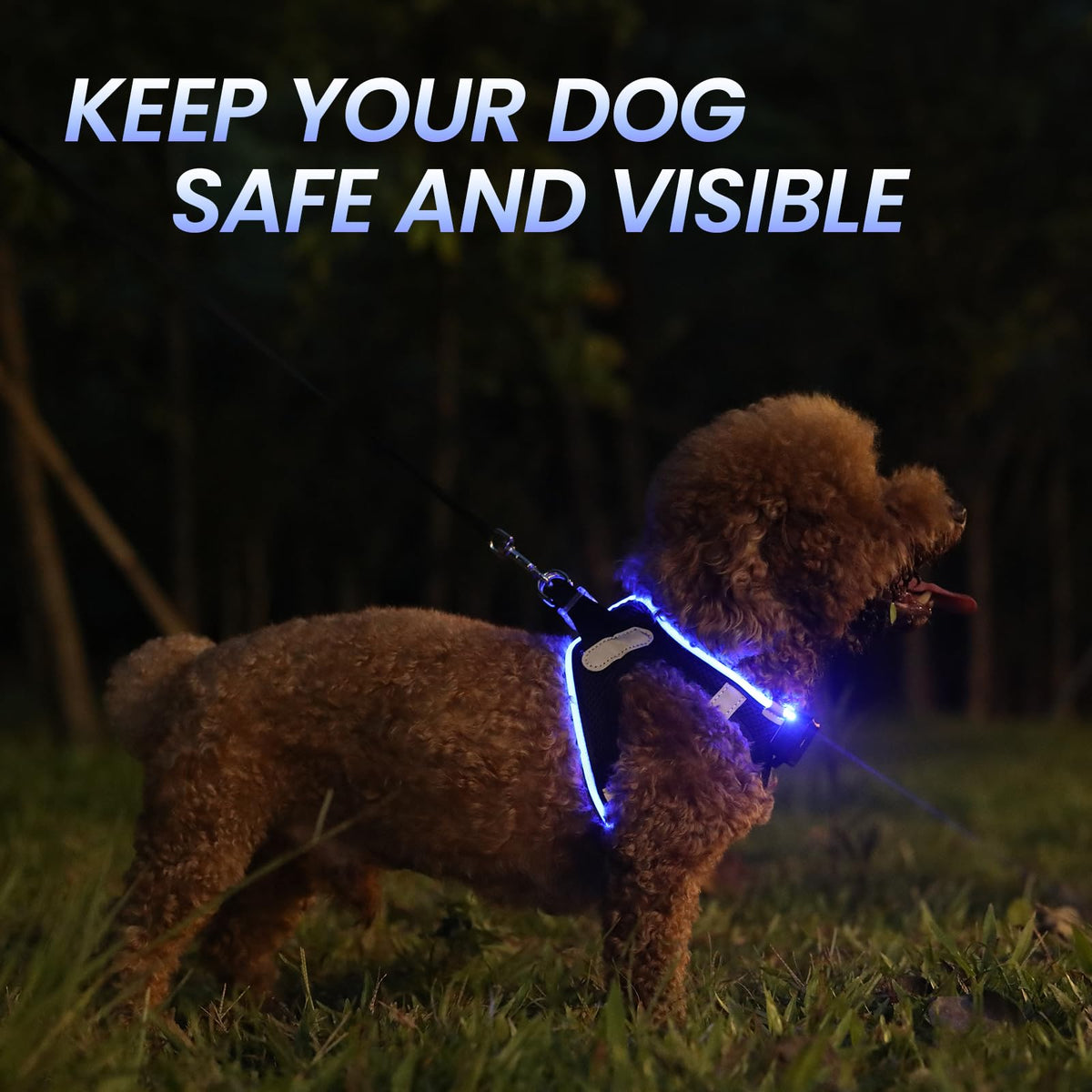 Q: How bright is the PCEoTllar Light Up LED Dog Harness?A: The PCEoTllar Light Up LED Dog Harness provides 360° bright light visibility, making your dog visible up to 550 yards away, greatly enhancing safety during nighttime walks.