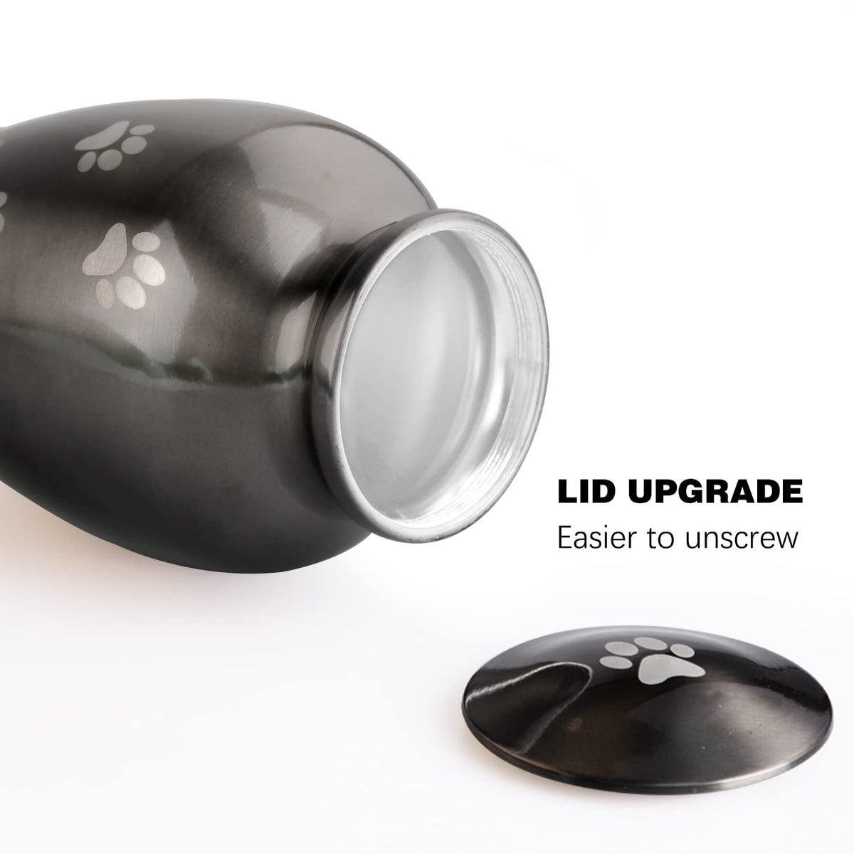 Q: What materials are used in the urn's construction?A: The PCS Memorial Pet Cremation Urn is made from durable stainless steel, ensuring it is lightweight yet sturdy. This material not only contributes to the urn's longevity but also allows for an elegant design, featuring adorable paw prints to honor your beloved pet.
