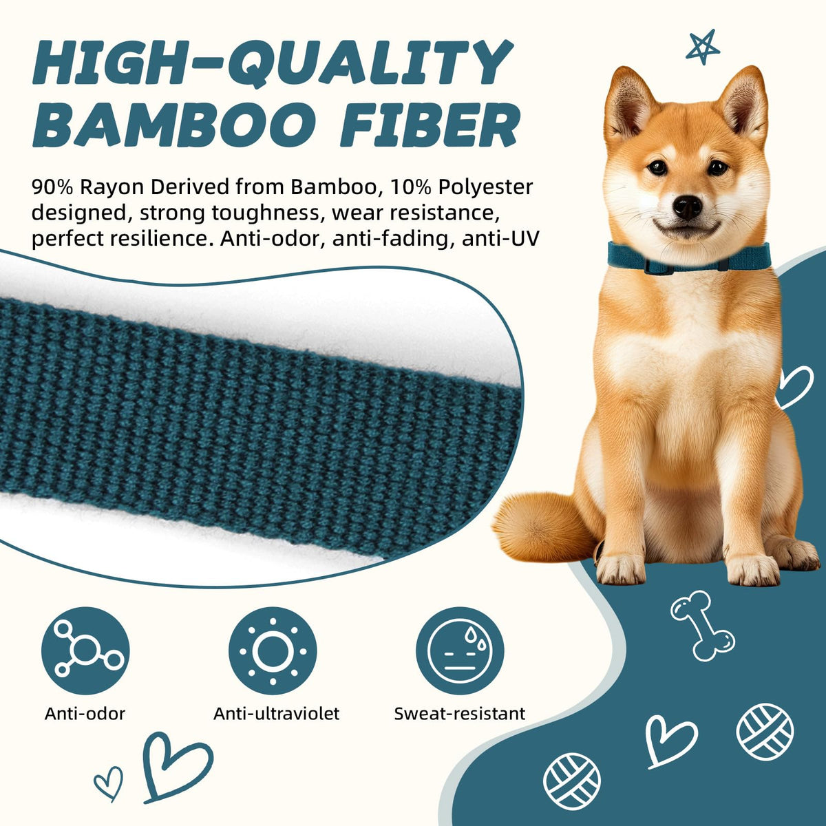 Peacock Blue Dog Collar And Leash Set For Large Dogs Soft And Breathable Of 90% Rayon From Bamboo And 10% Polyester Comfortable