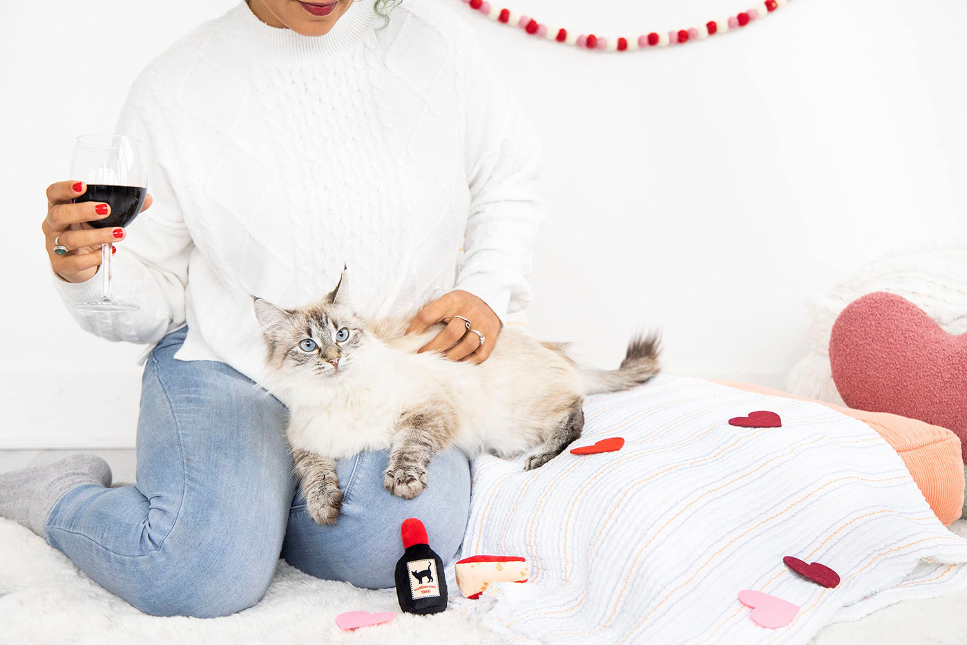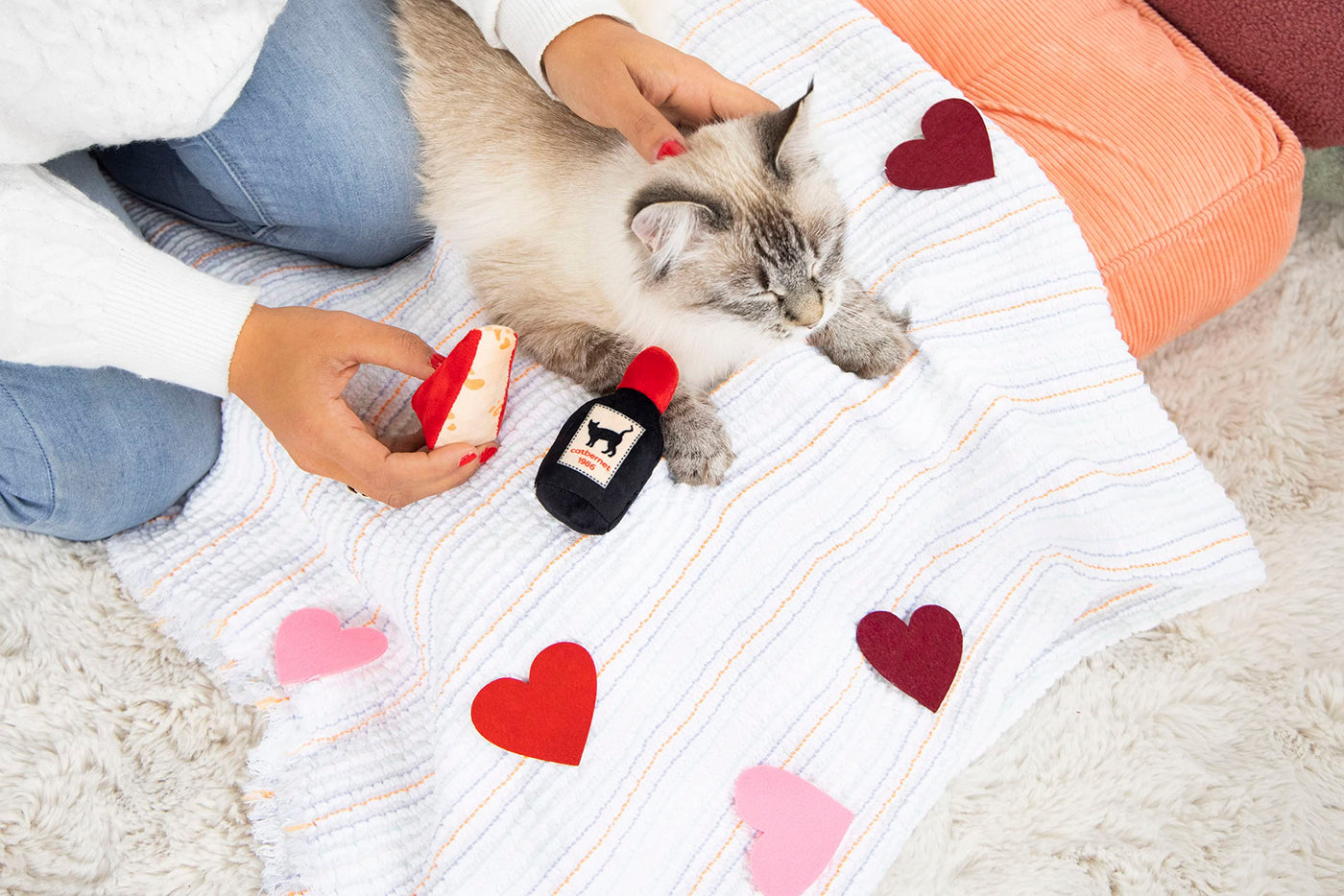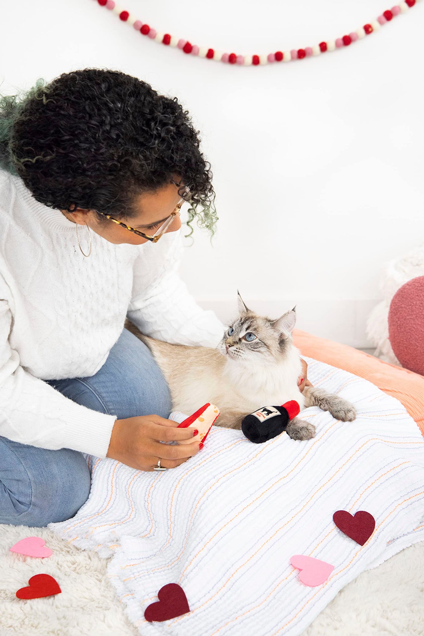 Pearhead Pet Cheese And Wine Plush Cat Toys, Set Of 2, Wine And Cheese Catnip Toys, Crinkle Cat Toys, Cat Owner Valentine'S Day Keepsake