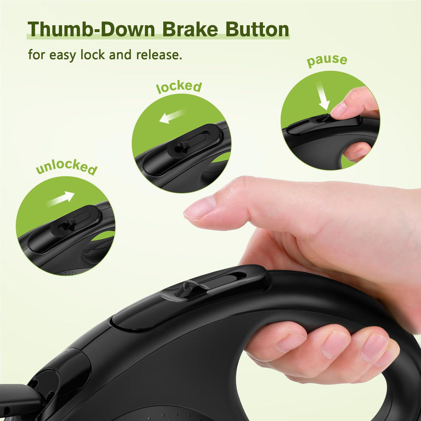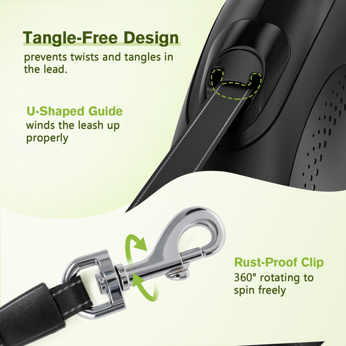 Pecute 26 ft Retractable Dog Leash, Heavy Duty Dog Leash with Anti-Slip Handle, 360 Tangle-Free, Nylonup Leash, One-Button Contr