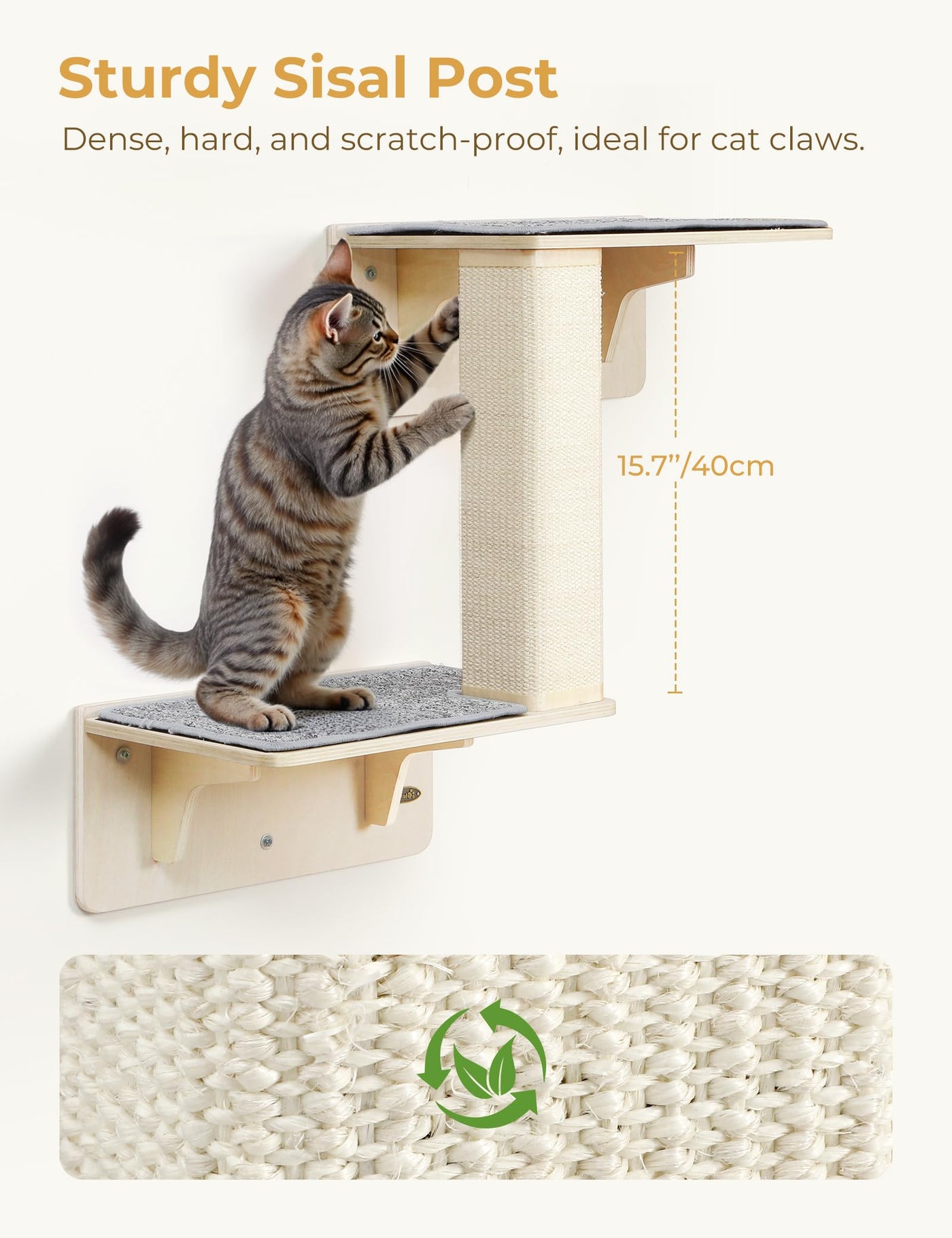 Pecute Double Cat Shelves With Scratching Post For Wall And Window With Solid Wood Frame, Washable & Removable Cover, Space-Savi