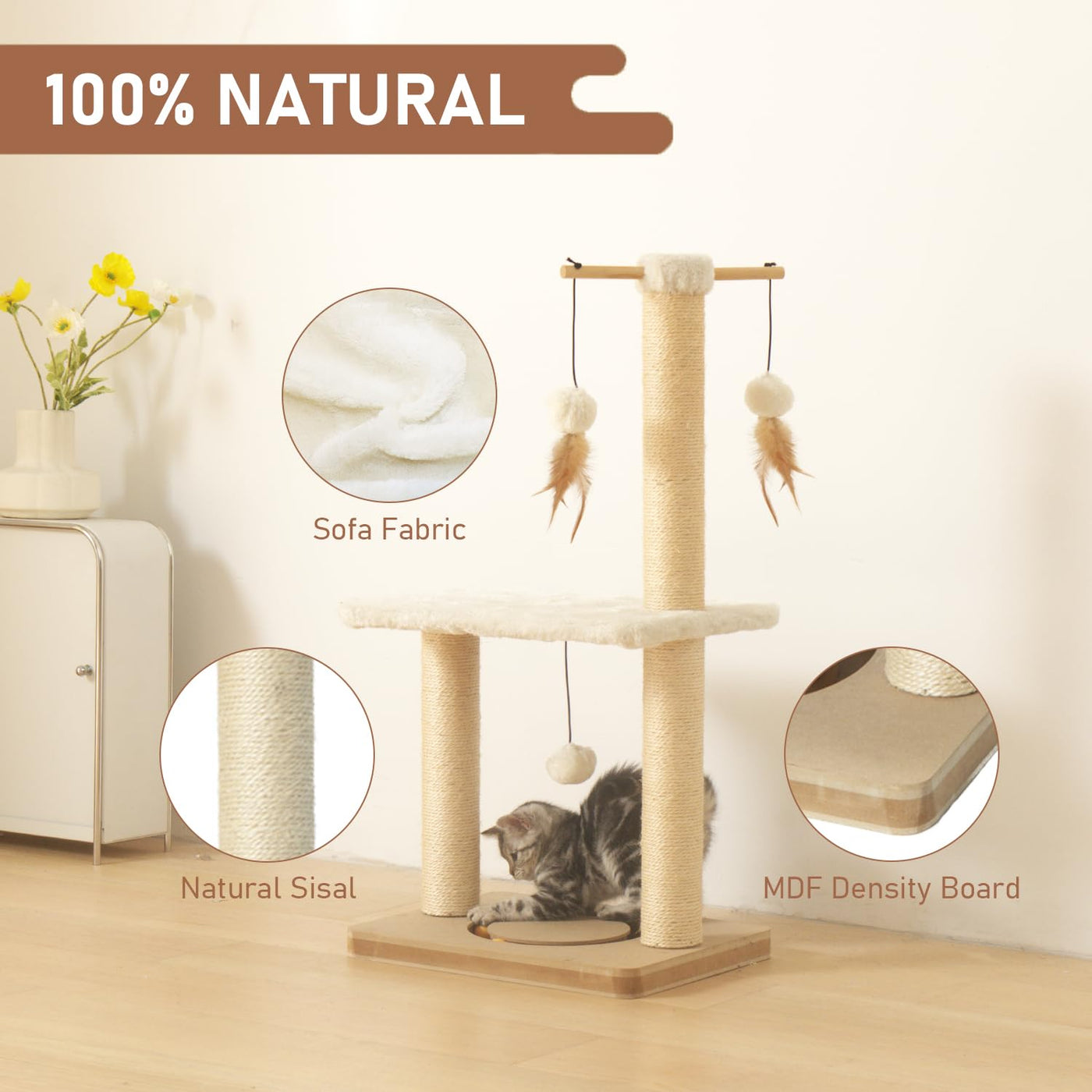Peekab Cat Scratching Post 31In Tall Sisal Scratch Posts With Perch Tracking Interatcive Toys Vertical Scratcher For Indoor Cats