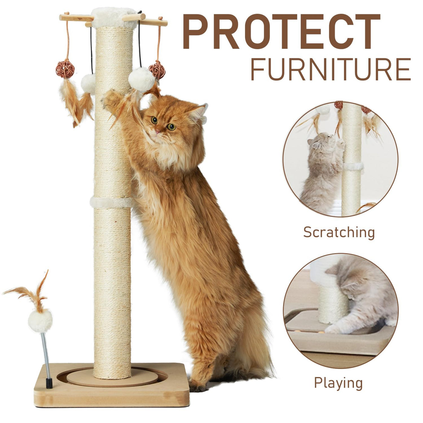 Peekab Cat Scratching Post 33 Inches Tall Large Sisal Scratch Posts With Track Ball Toys For Indoor Cats And Kittens,Vertical Sc