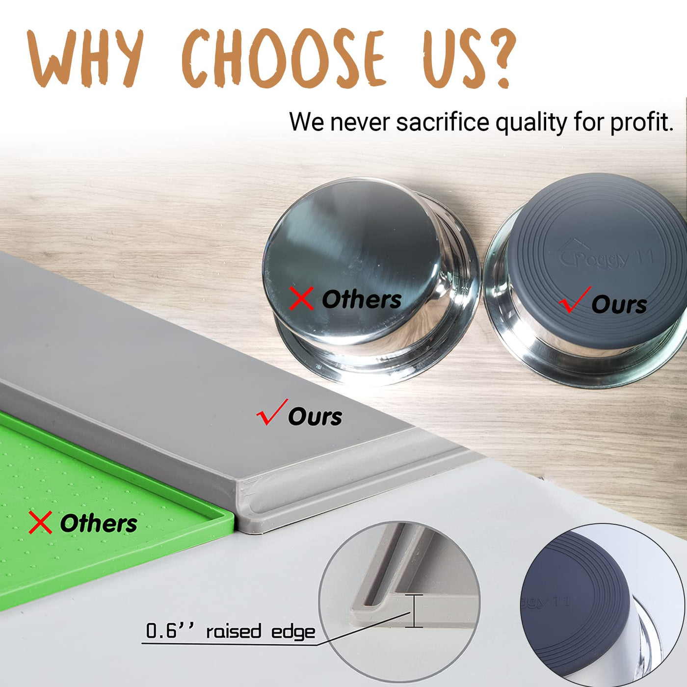 PEGGY11 Deep Stainless Steel Anti-Slip Dog Bowls with Silicone Mat - 2 Bowls + Mat, 6 Cups