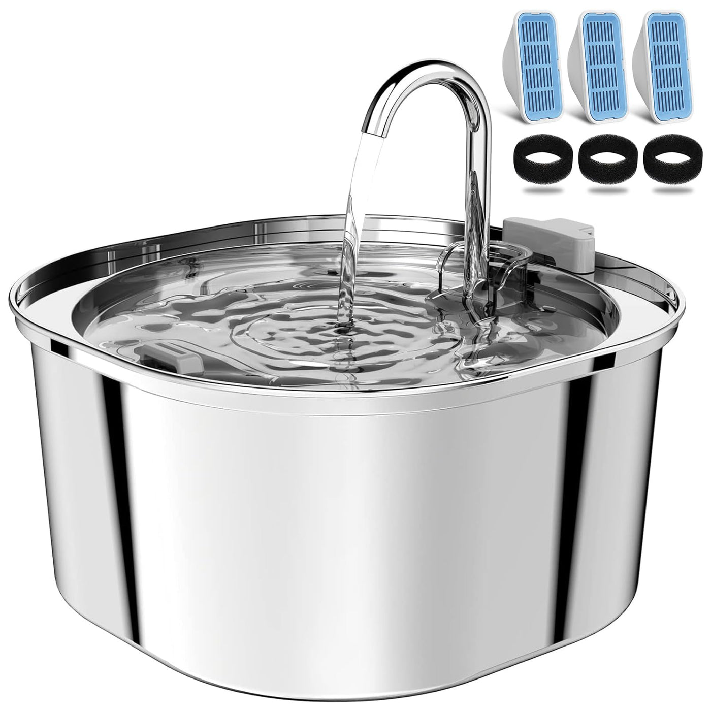 Pektaco Cat Water Fountain, 3.2L/108Oz Stainless Steel Pet Water Fountain For Cats/Dogs Indoor, Dog Drinking Dispenser Metal Kitty Spout With 3 Replacement Filters
