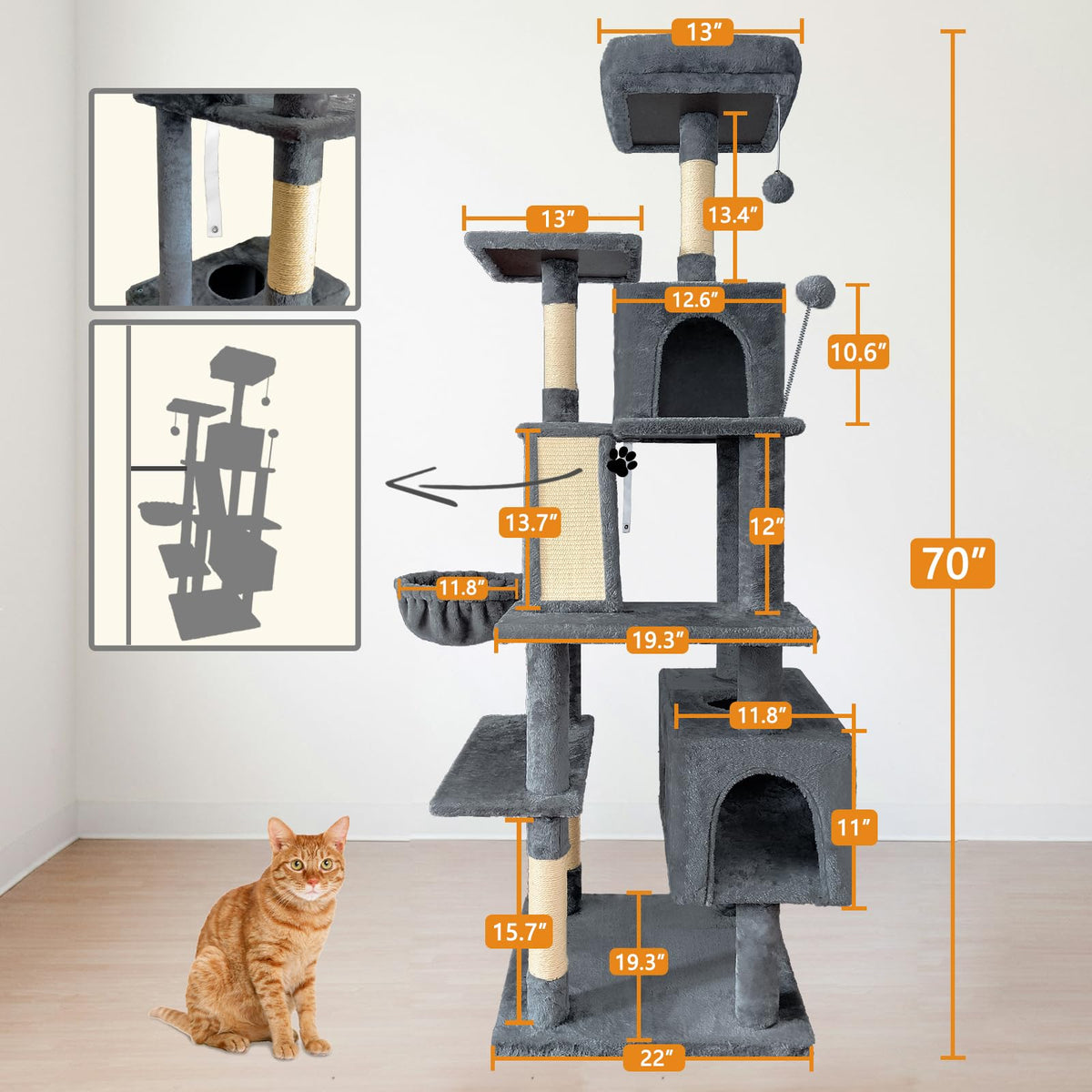 Pempet 70' Cat Tree Tower For Indoor Cats, Multi-Level Cat Tower Condo With Sisal Scratching Post (Dark Gray)