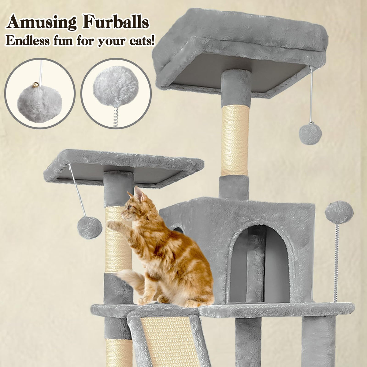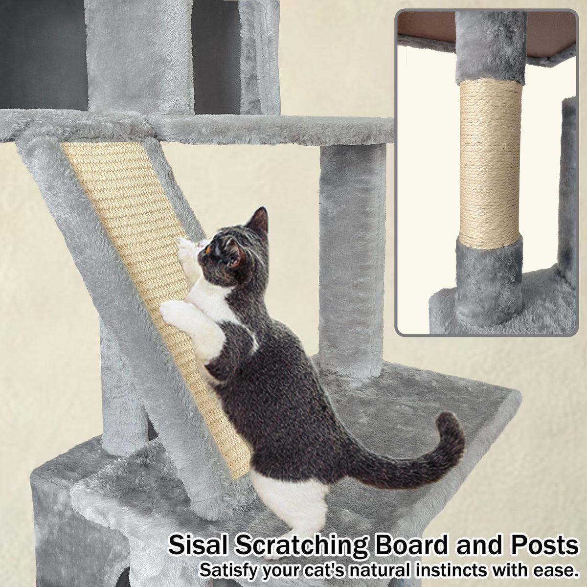 Pempet 70'' Cat Tree Tower For Indoor Cats, Multi-Level Cat Tower Condo With Sisal Scratching Post (Light Gray)