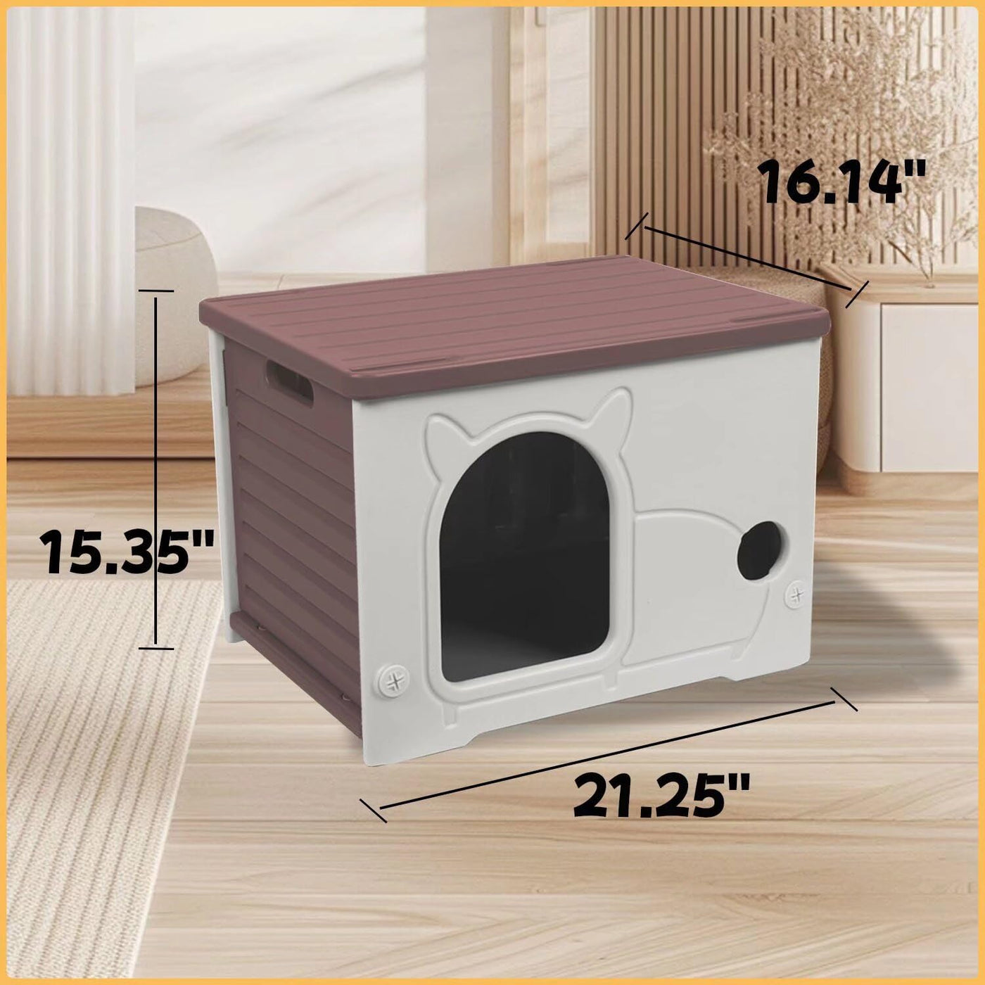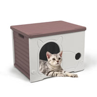 Pempet Plastic Outdoor Cat House Waterproof Feral Cat Shelter(Coffee)